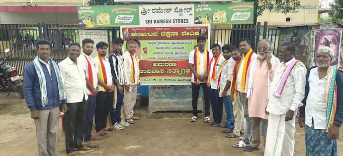 ಕನ್ನಡಪ್ರಭ ವಾರ್ತೆ ಕೊರಟಗೆರೆಪಟ್ಟಣದ ಕೆಎಸ್ಆರ್ಟಿಸಿ ಬಸ್ ನಿಲ್ದಾಣದಲ್ಲಿ ಕನ್ನಡದ ಧ್ವಜಸ್ತಂಭ ಸ್ಥಾಪಿಸುವಂತೆ ಇಲ್ಲಿನ ಕೊರಟಗೆರೆ ಕರ್ನಾಟಕ ರಕ್ಷಣಾ ವೇದಿಕೆಯ ತಾಲೂಕು ಅಧ್ಯಕ್ಷ ಕೆ.ಎನ್.ನಟರಾಜ್ ಹಾಗೂ ಸೈಫುಲ್ಲಾ ಎಂ.ಎಸ್. ನೇತೃತ್ವದಲ್ಲಿ ಅಮರಣಾ ಉಪವಾಸ ಸತ್ಯಾಗ್ರಹ ಏರ್ಪಡಿಸಲಾಗಿತ್ತು.8 ತಿಂಗಳ ಹಿಂದೆ ಕೆಎಸ್ಆರ್ಟಿಸಿ ಬಸ್ ನಿಲ್ದಾಣದಲ್ಲಿ ಮುಂದೆ ಸಾರ್ವಜನಿಕರಿಗೆ ತೊಂದರೆ ಉಂಟಾಗುತ್ತಿದೆ ಎಂದು ತಾಲೂಕು ಆಡಳಿತ 56 ಅಡಿಯ ಕನ್ನಡ ಧ್ವಜಸ್ತಂಭ ತೆರವುಗೊಳಿಸಲಾಗಿತ್ತು. ಆ ಜಾಗ ಬಿಟ್ಟು ಬೇರೆ ಜಾಗದಲ್ಲಿ ಧ್ವಜಸ್ತಂಭ ನಿರ್ಮಾಣ ಮಾಡಿಕೊಡಲಾಗುವುದು ಎಂದು ತಾಲೂಕು ಆಡಳಿತ ಭರವಸೆ ನೀಡಲಾಗಿತ್ತು. ಇಲ್ಲಿವರೆಗೂ ಜಾಗ ಗುರುತಿಸಿಲ್ಲ ಎಂದು ತಾಲೂಕು ಆಡಳಿತ ವಿರುದ್ಧ ಧ್ವಜಸ್ತಂಭ ಮರು ನಿರ್ಮಾಣವಾಗುವವರೆಗೂ ಅಮರಣಾ ಉಪವಾಸ ಸತ್ಯಾಗ್ರಹ ಹಮ್ಮಿಕೊಳ್ಳಲಾಗಿದೆ ಎಂದು ಕಾರ್ಯಕರ್ತರು ತಿಳಿಸಿದರು.ಸುಮಾರು 8 ತಿಂಗಳಿಂದ ಜಾಗವನ್ನು ಗುರುತಿಸಿಲ್ಲ ಹಾಗೂ ನವೆಂಬರ್ ತಿಂಗಳು ಆಗಮಿಸುತ್ತಿರುವದರಿಂದ ನ. 1 ರಂದು ಧ್ವಜಾರೋಹಣ ಮಾಡಬೇಕು ಎಂದು ಕೆಎಸ್ಆರ್ಟಿಸಿ ಬಸ್ ನಿಲ್ದಾಣದ ಮುಖ್ಯ ರಸ್ತೆಯ ಮುಂದೆ ಮಳೆ ಬಂದರೂ ಪ್ರತಿಭಟನೆ ನಿಲ್ಲಿಸದ ಕರವೇ ಕಾರ್ಯಕರ್ತರ ಸ್ಥಳಕ್ಕೆ ಕೊರಟಗೆರೆ ತಹಸೀಲ್ದಾರ್ ಮಂಜುನಾಥ್ ಹಾಗೂ ಸಿಪಿಐ ಅನಿಲ್ ಅವರು ಭೇಟಿ ನೀಡಿ ಕರವೇ ಕಾರ್ಯಕರ್ತರ ಜೊತೆ ಮಾತನಾಡಿ ಕೆಎಸ್ಆರ್ಟಿಸಿ ಬಸ್ ನಿಲ್ದಾಣದ ಅವರಣದಲ್ಲಿ ಜಾಗವನ್ನು ಗುರುತಿಸಲಾಗಿದೆ. ಅದಷ್ಟು ಬೇಗ ಧ್ವಜಸ್ತಂಭ ನಿರ್ಮಾಣ ಮಾಡಲಾಗುವುದು ಎಂದು ಪ್ರತಿಭಟನಾಕಾರರನ್ನು ಮನವೊಲಿಸುವಲ್ಲಿ ಯಶ್ವಸಿಯಾಗಿ ಪ್ರತಿಭಟನೆ ಅಂತ್ಯಗೊಳಿಸಿದರು.ಕೊರಟಗೆರೆ ಕರವೇ ಅಧ್ಯಕ್ಷ ಕೆ.ಎನ್. ನಟರಾಜ್ ಮಾತನಾಡಿ, ಜಿಲ್ಲೆಯಲ್ಲೇ 56 ಅಡಿ ಅತಿ ಎತ್ತರದ ಧ್ವಜಸ್ತಂಭವನ್ನು ರಾತ್ರೋರಾತ್ರಿ ನಾಕಾಬಂದಿ ಹಾಕಿ ಧ್ವಂಸಗೊಳಿಸಿದ ತಾಲೂಕು ಆಡಳಿತದ ವಿರುದ್ಧ ಈಗಾಗಲೇ ನಮ್ಮ ರಾಜ್ಯಾಧ್ಯಕ್ಷರಾದ ಟಿ.ಎ. ನಾರಾಯಣಗೌಡ್ರು ಕೊರಟಗೆರೆಗೆ ಬಂದು ಪ್ರತಿಭಟನೆ ಮಾಡಿ ಧ್ವಜಸ್ತಂಭ ಮರು ನಿರ್ಮಾಣ ಮಾಡಬೇಕು ಎಂದು ತಿಳಿಸಿದರು.