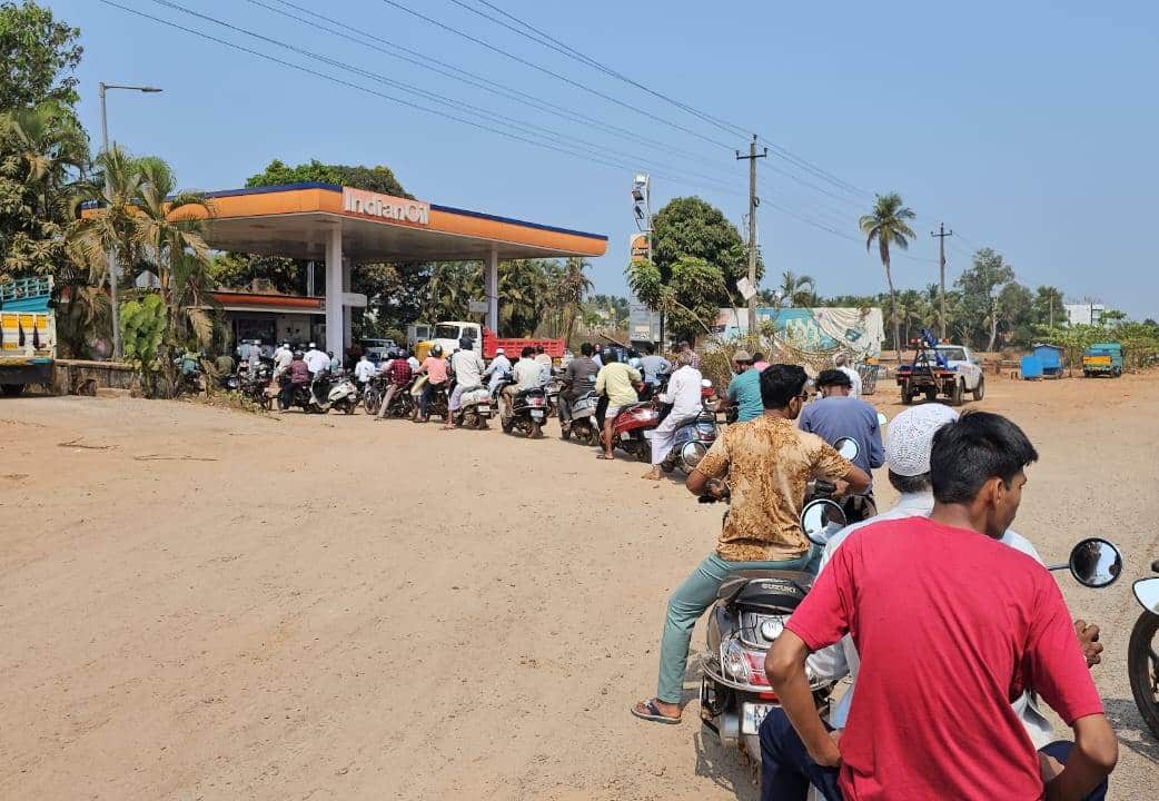ಸಾಮಾಜಿಕ ಜಾಲತಾಣಗಳಲ್ಲಿ ಪೆಟ್ರೋಲ್ ದರ ಏರಿಕೆ ಮತ್ತು ಕೊರತೆ ಉಂಟಾಗಲಿದೆ ಎನ್ನುವ ಬಗ್ಗೆ ಯಾರೋ ವದಂತಿ ಹಬ್ಬಿಸಿದ್ದರಿಂದಲೇ ಪೆಟ್ರೋಲ್ ಬಂಕುಗಳಲ್ಲಿ ಜನರು ವಾಹನಗಳೊಂದಿಗೆ ಕ್ಯೂ ನಿಲ್ಲುವಂತಾಗಿದೆ. ಈ ಸುದ್ದಿ ತಾಲೂಕಿನಾದ್ಯಂತ ಹರಡಿ ಹಳ್ಳಿಗಳಿಂದಲೂ ಜನರು ಪೆಟ್ರೋಲ್ ಹಾಕಿಸಲು ಬಂಕ್ ಗೆ ತರುವಂತಾಯಿತು. ಈ ಕುರಿತು ಪ್ರತಿಕ್ರಿಯಿಸಿದ ಕಾಮಾಕ್ಷಿ ಪೆಟ್ರೋಲ್ ಬಂಕ್ ಮಾಲೀಕ ನಾಗೇಶ ಭಟ್, ಇಸ್ರೇಲ್-ಇರಾನ್ ಯುದ್ಧದಿಂದ ಪೆಟ್ರೋಲ್ ಕೊರತೆ ಉಂಟಾಗಲಿದೆ ಎನ್ನುವ ಬಗ್ಗೆ ಭಟ್ಕಳದಲ್ಲಿ ಕೆಲವರು ಸುಳ್ಳು ವದಂತಿ ಹಬ್ಬಿಸಿದ್ದರಿಂದ ಬೆಳಗ್ಗೆ ಜನರು ಪೆಟ್ರೋಲ್ ಗಾಗಿ ಕ್ಯೂ ನಿಲ್ಲುವಂತಾಗಿದೆ. ಕಂಪೆನಿಯಿಂದ ನಮಗೆ ಪೆಟ್ರೋಲ್ ಸರಬರಾಜಿನಲ್ಲಿ ವ್ಯತ್ಯಯ ಉಂಟಾಗುವ ಬಗ್ಗೆ ಯಾವುದೇ ಸಂದೇಶ ಬಂದಿಲ್ಲ. ಪೆಟ್ರೋಲ್-ಡಿಸೇಲ್ ಎಂದಿನಂತೆ ಕಳುಹಿಸುತ್ತಿದ್ದಾರೆ. ಜನರು ಸುಳ್ಳು ವದಂತಿ ನಂಬಬಾರದು ಎಂದು ತಿಳಿಸಿದ್ದಾರೆ.