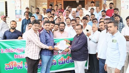 ವಿವಿಧ ಬೇಡಿಕೆಗಳನ್ನು ಈಡೇರಿಸುವಂತೆ ಒತ್ತಾಯಿಸಿ ಮಾರಾಟಗಾರರು ಸಹಾಯಕ ಕೃಷಿ ನಿರ್ದೇಶಕರ ಕಚೇರಿ ಬಳಿ ಜಮಾವಣೆ