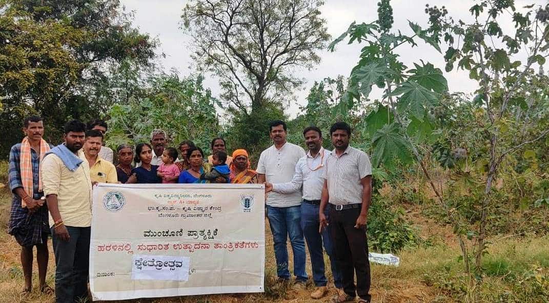 ದೊಡ್ಡಬಳ್ಳಾಪುರ ತಾಲೂಕಿನ ಕೊಟ್ಟಿಗೆ ಮಾಚೇನಹಳ್ಳಿ ಗ್ರಾಮದಲ್ಲಿ ಹರಳಿನ ಸುಧಾರಿತ ತಳಿಯ ಪ್ರಾತ್ಯಕ್ಷಿಕೆ ನಡೆಯಿತು.