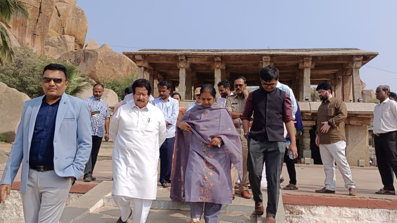 ನಗರದ ಜಿಲ್ಲಾ ಪಂಚಾಯಿತಿ ಸಭಾಂಗಣದಲ್ಲಿ ಬುಧವಾರ ನಡೆದ ಹಂಪಿ ಉತ್ಸವದ ಪೂರ್ವಭಾವಿ ಸಭೆಯಲ್ಲಿ ಮಾತನಾಡಿ, ಫೆ. 2ರಂದು ಮುಖ್ಯಮಂತ್ರಿ ಸಿದ್ದರಾಮಯ್ಯನವರು ಉತ್ಸವಕ್ಕೆ ವಿಧ್ಯುಕ್ತ ಚಾಲನೆ ನೀಡಲಿದ್ದಾರೆ. ಫೆ. 2ರಿಂದ 4ರ ವರೆಗೆ ಉತ್ಸವ ಅದ್ಧೂರಿಯಾಗಿ ನಡೆಯಲಿದೆ. ಇದಕ್ಕಾಗಿ ಈಗಾಗಲೇ ಹಲವು ಸುತ್ತಿನ ಚರ್ಚೆಗಳನ್ನು ನಡೆಸಲಾಗಿದೆ. ಹಂಪಿ ಉತ್ಸವ ಯಶಸ್ವಿಗೆ ಮುಖ್ಯಮಂತ್ರಿ ಸಿದ್ದರಾಮಯ್ಯನವರು ಸಂಪೂರ್ಣ ಸಹಕಾರ ನೀಡಿದ್ದಾರೆ ಎಂದರು.ನಾಲ್ಕು ವೇದಿಕೆಗಳು: ಹಂಪಿ ಉತ್ಸವಕ್ಕಾಗಿ ನಾಲ್ಕು ವೇದಿಕೆಗಳನ್ನು ನಿರ್ಮಿಸಲಾಗುತ್ತಿದೆ. ಗಾಯತ್ರಿ ಪೀಠದಲ್ಲಿ ಮುಖ್ಯ ವೇದಿಕೆ, ಎದುರು ಬಸವಣ್ಣ ಮಂಟಪದಲ್ಲಿ ಎರಡನೇ ವೇದಿಕೆ, ವಿರೂಪಾಕ್ಷೇಶ್ವರ ದೇವಾಲಯದ ಆವರಣದಲ್ಲಿ ಮೂರನೇ ವೇದಿಕೆ ಮತ್ತು ಸಾಸಿವೆ ಕಾಳು ಗಣಪತಿ ಮಂಟಪದ ಬಳಿ ನಾಲ್ಕನೇ ವೇದಿಕೆ ನಿರ್ಮಿಸಲಾಗುತ್ತಿದೆ. ಹಂಪಿ ಗಜಶಾಲೆ ಆವರಣದಲ್ಲಿ ಧ್ವನಿ ಮತ್ತು ಬೆಳಕು ಕಾರ್ಯಕ್ರಮ ನಡೆಸಲು ಉದ್ದೇಶಿಸಲಾಗಿದ್ದು, ಈಗಾಗಲೇ ಕೇಂದ್ರ ಸರ್ಕಾರಕ್ಕೆ ಪತ್ರ ಕೂಡ ಬರೆಯಲಾಗಿದೆ. 110 ಸ್ಥಳೀಯ ಕಲಾವಿದರನ್ನೊಳಗೊಂಡ ಧ್ವನಿ ಮತ್ತು ಬೆಳಕು ಕಾರ್ಯಕ್ರಮದ ಸಂಪೂರ್ಣ ವೆಚ್ಚ ಭರಿಸಲಾಗುವುದು ಎಂದು ಪತ್ರದ ಮೂಲಕ ತಿಳಿಸಲಾಗಿದೆ ಎಂದರು.
