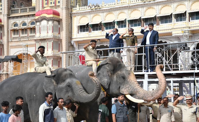 ಅ.2 ರಂದು ದಸರಾ ಜಂಬೂಸವಾರಿ ದಿನ ಚಿನ್ನದ ಅಂಬಾರಿ ಹೊತ್ತ ಅಭಿಮನ್ಯು ಬರುವ ಮಾರ್ಗ, ಪುಷ್ಪಾರ್ಚನೆ ಮಾಡುವ ಸ್ಥಳ, ಆನೆಗಳ ತಂಡದ ಮುಂದೆ ಸಂಚರಿಸಲಿರುವ ಅಶ್ವರೋಹಿದಳ, ಪಥಸಂಚಲನದಲ್ಲಿ ಪಾಲ್ಗೊಳ್ಳುವ ಪೊಲೀಸ್ ತುಕಡಿಗಳು, ಪೊಲೀಸ್ ಬ್ಯಾಂಡ್ ಗಳು ಯಾವ ಕ್ರಮಾಂಕದಲ್ಲಿ ಸಾಗಬೇಕೆಂಬುದನ್ನು ಪರಿಚಯಿಸುವ ನಿಟ್ಟಿನಲ್ಲಿ ಈ ತಾಲೀಮು ಜರುಗಿತು.ಗಜಪಡೆಯ ಎಲ್ಲಾ ತಾಲೀಮು ಅಂತ್ಯಈ ಬಾರಿಯ ದಸರಾಗೆ ಮೊದಲ ತಂಡದಲ್ಲಿ 9, ಎರಡನೇ ತಂಡದಲ್ಲಿ 5 ಸೇರಿದಂತೆ ಒಟ್ಟು 14 ಆನೆಗಳು ಕಾಡಿನಿಂದ ನಾಡಿಗೆ ಆಗಮಿಸಿದ್ದು, ವಿಜಯದಶಮಿ ಮೆರವಣಿಗಾಗಿ ವಿವಿಧ ತಾಲೀಮಿನಲ್ಲಿ ಆನೆಗಳು ಭಾಗವಹಿಸಿ ಯಶಸ್ವಿಗೊಳಿಸಿವೆ.