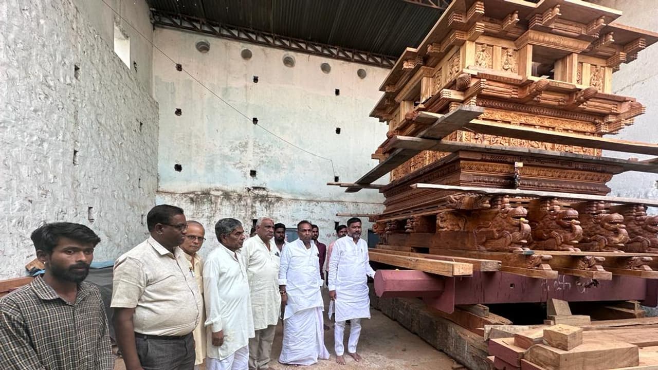ಮಸ್ಕಿಯಲ್ಲಿ ನಿರ್ಮಾಣ ಹಂತದ ನೂತನ ರಥ ಪರಿಶೀಲಿಸಿದ ಶಾಸಕರು ಮಸ್ಕಿ: ಪಟ್ಟಣದ ಮಲ್ಲಿಕಾರ್ಜುನ ದೇವಸ್ಥಾನದ ರಥ 150 ವರ್ಷಗಳಷ್ಟು ಹಳೆಯದಾದ ಕಾರಣ ಭಕ್ತರು ರು.1.30 ಕೋಟಿ ವೆಚ್ಚದಲ್ಲಿ ನೂತನ ರಥ ನಿರ್ಮಾಣಕ್ಕೆ ಮುಂದಾಗಿದ್ದು ಅದಕ್ಕೆ ಆರ್ಥಿಕ ಸಹಾಯ ಸೇರಿದಂತೆ ಎಲ್ಲಾ ಸಹಕಾರ ನೀಡುವುದಾಗಿ ಶಾಸಕ ಆರ್.ಬಸನಗೌಡ ತುರ್ವಿಹಾಳ ಭರವಸೆ ನೀಡಿದರು. ಪಟ್ಟಣದಲ್ಲಿ ನೂತನ ರಥ ನಿರ್ಮಾಣದ ಕಾರ್ಯ ಪರಿಶೀಲಿಸಿ ಮಾತನಾಡಿದ ಅವರು, ನೂತನ ರಥದ ಕಾರ್ಯ ಬರದಿಂದ ಸಾಗಿದ್ದು, ಶೇ.70ರಷ್ಟು ಪೂರ್ಣಗೊಂಡಿದೆ. ಕೊಪ್ಪಳದ ಗವಿಸಿದ್ದೇಶ್ವರ ಮಠದ ಅಭಿನವ ಗವಿಸಿದ್ದೇಶ್ವರ ಸ್ವಾಮೀಜಿ ಹಾಗೂ ಗಚ್ಚಿನಮಠದ ವರರುದ್ರಮುನಿ ಸ್ವಾಮೀಜಿ ನೇತೃತ್ವದಲ್ಲಿ ಖ್ಯಾತ ಶಿಲ್ಪಿ ಯಲ್ಲಪ್ಪ ಆಚಾರ ಮತ್ತು ಅವರ ಸಹಶಿಲ್ಪಿಗಳು ಕಳೆದು ನಾಲ್ಕೈದು ತಿಂಗಳಿನಿಂದ ರಥ ನಿರ್ಮಾಣ ಕಾರ್ಯದಲ್ಲಿ ನಿರತರಾಗಿದ್ದಾರೆ ಎಂದರು. ಸಂಪೂರ್ಣ ಸಾಗವಾನಿ ಕಟ್ಟಿಗೆಯಲ್ಲಿ ವಿವಿಧ ಕಲಾಕೃತಿಯೊಂದಿಗೆ ನಿರ್ಮಾಣವಾಗುತ್ತಿರುವ ರಥದ ಎತ್ತರ 39 ಅಡಿ ಇರಲಿದ್ದು, ನೂತನ ತಂತ್ರಜ್ಞಾನ ಹೊಂದಿರಲಿದೆ ಎಂದು ಹೇಳಿದರು. ಮುಂದಿನ ವರ್ಷದ ಜಾತ್ರೆ ಪ್ರಯುಕ್ತ ನೂತನ ರಥ ಭಕ್ತರಿಗೆ ಸಮರ್ಪಣೆಯಾಗಲಿದೆ. ನೂತನ ರಥವು 1.30 ಕೋಟಿ ವೆಚ್ಚದಲ್ಲಿ ನಿರ್ಮಾಣವಾಗುತ್ತಿದ್ದು, ಮಸ್ಕಿ ತಾಲೂಕು ಸೇರಿ ಜಿಲ್ಲೆ ವಿವಿಧೆಡೆ ಇರುವ ಭಕ್ತರು ದೇಣಿಗೆ ನೀಡುವ ಮೂಲಕ ಕೈಜೋಡಿಸಬೇಕು ಎಂದು ಮನವಿ ಮಾಡಿದರು. ರಥ ನಿರ್ಮಾಣ ಸಮಿತಿ ಸದಸ್ಯರಾದ ಮಲ್ಲಪ್ಪ ಕುಡತಿನಿ, ಸಿದ್ಧಲಿಂಗಯ್ಯ ಗಚ್ಚಿನಮಠ, ಲಕ್ಷ್ಮೀನಾರಾಯಣ ಶೆಟ್ಟಿ, ಮುಖಂಡ ಮಲ್ಲನಗೌಡ ಗುಂಡಾ, ಶ್ರೀಶೈಲಪ್ಪ ಬ್ಯಾಳಿ ಇತರರು ಇದ್ದರು.