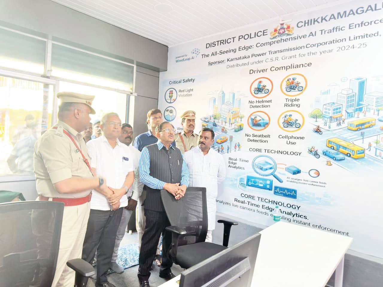ಫೋಟೊ::ಚಿಕ್ಕಮಗಳೂರು ಜಿಲ್ಲಾ ಪೊಲೀಸ್ ವರಿಷ್ಠಾಧಿಕಾರಿ ಕಚೇರಿಯಲ್ಲಿ ಸ್ಥಾಪಿಸಲಾದ ಇಂಟಿಗ್ರೇಟೆಡ್ ಕಮಾಂಡ್ ಅಂಡ್ ಕಂಟ್ರೋಲ್ ಸೆಂಟರ್ ನ್ನು ಗೃಹ ಸಚಿವ ಡಾ,ಜಿ.ಪರಮೇಶ್ವರ್ ಪರಿಶೀಲಿಸಿದರು. ಈ ವೇಳೆ ಜಿಲ್ಲಾ ವರಿಷ್ಠಾಧಿಕಾರಿ ಡಾ.ಜಿತೇಂದ್ರ ಕುಮಾರ್ ದಯಾಮ ಮೊದಲಾದವರಿದ್ದರು.