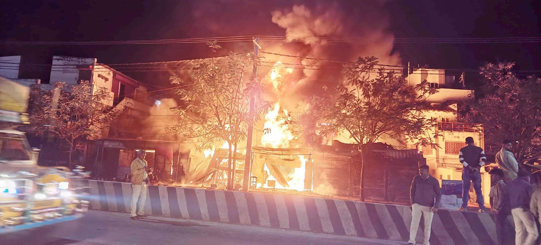 ಬೆಂಕಿ ಅವಘಡದಿಂದ ನಗರದ ರಾಯಚೂರು ರಸ್ತೆಯಲ್ಲಿರುವ ಆರು ಅಂಗಡಿಗಳು ಭಸ್ಮವಾಗಿ, ಕೋಟ್ಯಂತರ ರೂಪಾಯಿ ಹಾನಿಯಾಗಿರುವ ಘಟನೆ ಗುರುವಾರ ತಡರಾತ್ರಿ ನಡೆದಿದೆ.