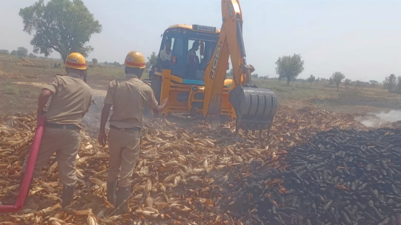 ಸ್ಥಳಕ್ಕೆ ಅಗ್ನಿಶಾಮಕ ಇಲಾಖೆ ಸಿಬ್ಬಂದಿ ಡೌಡಾಯಿಸಿ ಬೆಂಕಿ ನಂದಿಸಲು ಪ್ರಯತ್ನಿಸಿದರು. ಈ ವೇಳೆಗಾಗಲೆ ಬೆಂಕಿ ವ್ಯಾಪಕವಾಗಿ ಹರಡಿಕೊಂಡ ಕಾರಣ ಬಹುತೇಕ ಫಸಲು ಸುಟ್ಟು ಹೋಗಿದ್ದು, ಅಂದಾಜು ₹5 ಲಕ್ಷ ಹಾನಿಯಾಗಿದೆ ಎಂದು ತಿಳಿದು ಬಂದಿದೆ. ಬೆಂಕಿ ತಗುಲಿರುವ ಕುರಿತು ನಿಖರ ಮಾಹಿತಿ ತಿಳಿದು ಬಂದಿಲ್ಲ. ಈ ಬಾರಿ ಉತ್ತಮ ಮೆಕ್ಕೆಜೋಳದ ಫಸಲು ಬಂದರೂ ಬೆಲೆ ಕಸಿತದಿಂದ ಕಂಗಾಲಾಗಿದ್ದ ರೈತರು ಬೆಂಕಿ ಅವಘಡದಿಂದ ಆಘಾತಕ್ಕೆ ಒಳಗಾಗಿದ್ದು, ಯಲ್ಲಪ್ಪ ಅಂಗಿ ಸೇರಿದಂತೆ ಹಾನಿಗೊಳಗಾದ ರೈತರು ಸಾಲ ಮಾಡಿ ಮೆಕ್ಕೆಜೋಳ ಬೆಳೆದಿದ್ದು, ಬೆಲೆ ಕುಸಿತದ ಮಧ್ಯೆಯೂ ಕೈಗೆ ಬಂದ ತುತ್ತು ಬಾಯಿಗೆ ಬರದಂತಾಯಿತು ಎಂದು ಅವಲತ್ತುಕೊಂಡರು.ಇಂದಿನಿಂದ ಎನ್ಎಸ್ಎಸ್ ವಿಶೇಷ ಶಿಬಿರ
