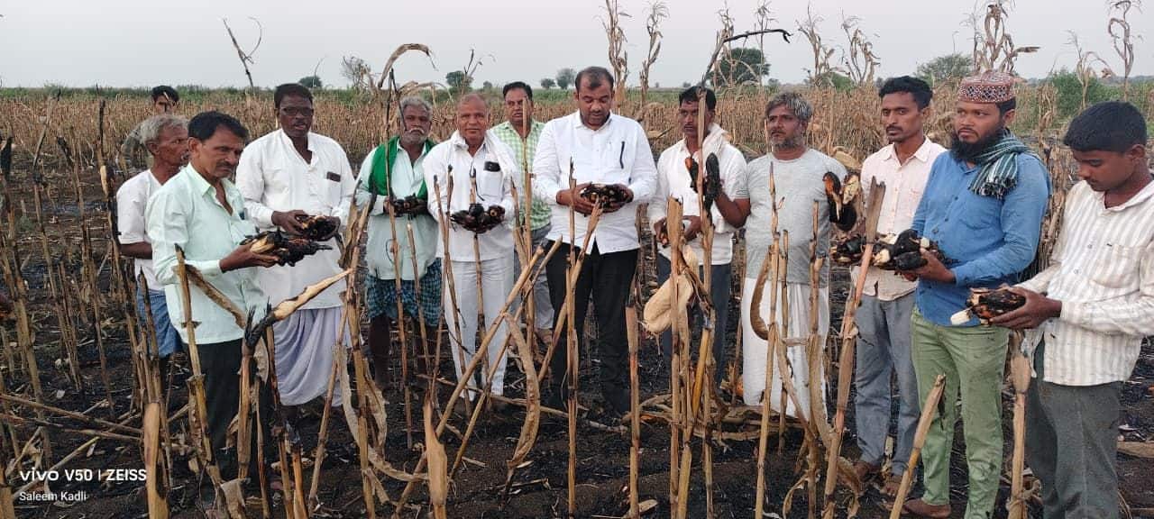 ತಾಲೂಕಿನ ಕಳಸ ಗ್ರಾಮ ವ್ಯಾಪ್ತಿಯ ಜಮೀನಿನಲ್ಲಿ ಸೋಮವಾರ ಬೆಂಕಿ ಅವಘಡ ಸಂಭವಿಸಿ 12 ಎಕರೆಯಷ್ಟು ಮೆಕ್ಕೆಜೋಳ ಬೆಳೆ ಸಂಪೂರ್ಣವಾಗಿ ಸುಟ್ಟಿದ್ದು ಜಮೀನಿಗೆ ಕೆಪಿಸಿಸಿ ರಾಜ್ಯ ಪ್ರಧಾನ ಕಾರ್ಯದರ್ಶಿ ಷಣ್ಮುಖಪ್ಪ ಶಿವಳ್ಳಿ ಭೇಟಿ ನೀಡಿ ಪರಿಶೀಲಿಸಿದರು.ರೈತರಾದ ಈರಣ್ಣ ದೊಡ್ಡೂರ, ನಿಂಗನಗೌಡ ಮರಿಗೌಡ್ರ, ಮಹ್ಮದಹನೀಫ ಉಪ್ಪಾರ ಮತ್ತು ಹಜರೇಸಾಬ ಸೂರಣಗಿ ಎಂಬುವರಿಗೆ ಸೇರಿದ ಜಮೀನಿನಲ್ಲಿ ಬೆಳೆದಿದ್ದ ಗೋವಿನ ಜೋಳಕ್ಕೆ ಬೆಂಕಿ ತಗುಲಿ ಸಂಪೂರ್ಣ ನಾಶವಾಗಿದೆ.