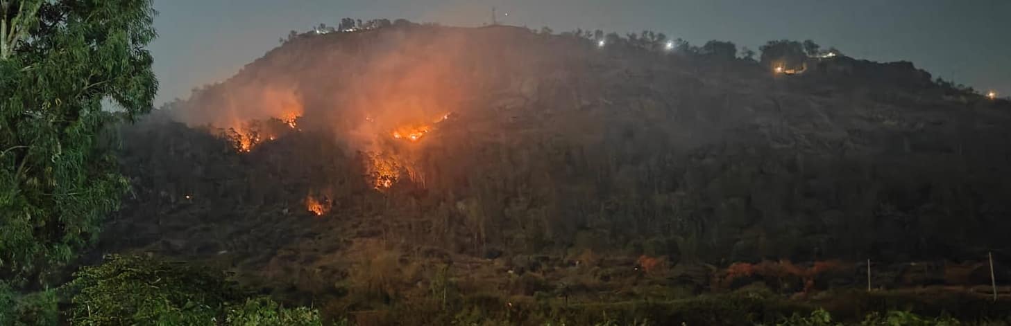 ಸಿಕೆಬಿ-6 ವಿಶ್ವವಿಖ್ಯಾತ ಪ್ರವಾಸಿ ತಾಣ ನಂದಿ ಬೆಟ್ಟದಲ್ಲಿ ಅಕಸ್ಮಾತ್ ಬೆಂಕಿ ಕಾಣಿಸಿಕೊಂಡು ಹತ್ತಾರು ಎಕರೆ ಅರಣ್ಯ ಪ್ರದೇಶ ಬೆಂಕಿಗಾಹುತಿಯಾಗುತ್ತಿರುವುದುವಿಶ್ವವಿಖ್ಯಾತ ನಂದಿ ಬೆಟ್ಟದಲ್ಲಿ ಬೆಂಕಿಯ ಅನಾಹುತ