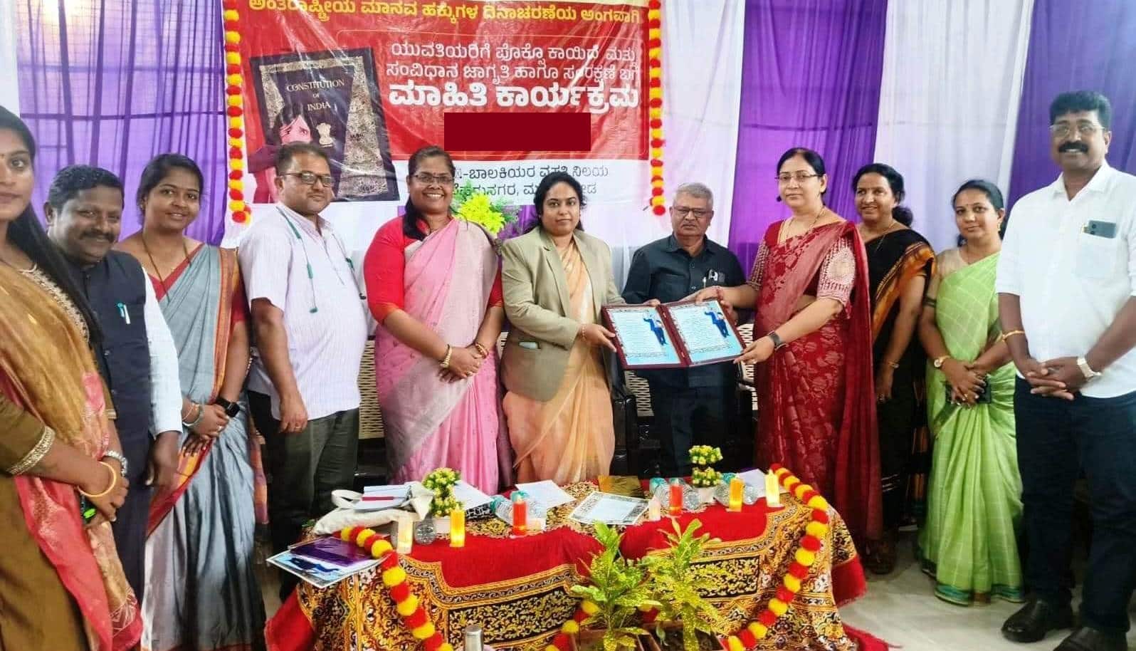 ಪಟ್ಟಣದ ನೆಹರು ನಗರ ಮೆಟ್ರಿಕ್ ಪೂರ್ವ ಬಾಲಕಿಯರ ವಸತಿ ನಿಲಯ ಸಂವಿಧಾನ ಸಂರಕ್ಷಕರ ಪಡೆ, ತಾಲೂಕಾ ಉಚಿತ ಕಾನೂನು ನೆರವು ಪ್ರಾಧಿಕಾರ ಮುಂಡಗೋಡ, ಸಾಧನಾ ಮಹಿಳಾ ಸಾಂತ್ವನ ಕೇಂದ್ರ ಮುಂಡಗೋಡ, ಕನ್ನಡ ಸಾಹಿತ್ಯ ಪರಿಷತ್ತು ಮುಂಡಗೋಡ ಇವುಗಳ ಸಂಯುಕ್ತ ಆಶ್ರಯದಲ್ಲಿ ಅಂತಾರಾಷ್ಟ್ರೀಯ ಮಾನವ ದಿನಾಚರಣೆಯ ಅಂಗವಾಗಿ ಯುವತಿಯರಿಗೆ ಪೋಕ್ಸೋ ಕಾಯಿದೆ ಜಾಗೃತಿ ಮತ್ತು ಸಂವಿಧಾನದ ಮಹತ್ವ ಹಾಗೂ ಸಂರಕ್ಷಣೆ ಬಗ್ಗೆ ಮಾಹಿತಿ ಕಾರ್ಯಕ್ರಮ ಉದ್ಘಾಟಿಸಿ ಮಾತನಾಡಿದರು.ಪ್ರತಿಯೊಬ್ಬರು ಕೂಡ ಮಾನವ ಹಕ್ಕುಗಳ ಮತ್ತು ಮೂಲಭೂತ ಹಕ್ಕು ಅರಿತು ಬದುಕನ್ನು ರೂಪಿಸುವ ಪ್ರಯತ್ನ ಮಾಡಬೇಕು ಎಂದರು.