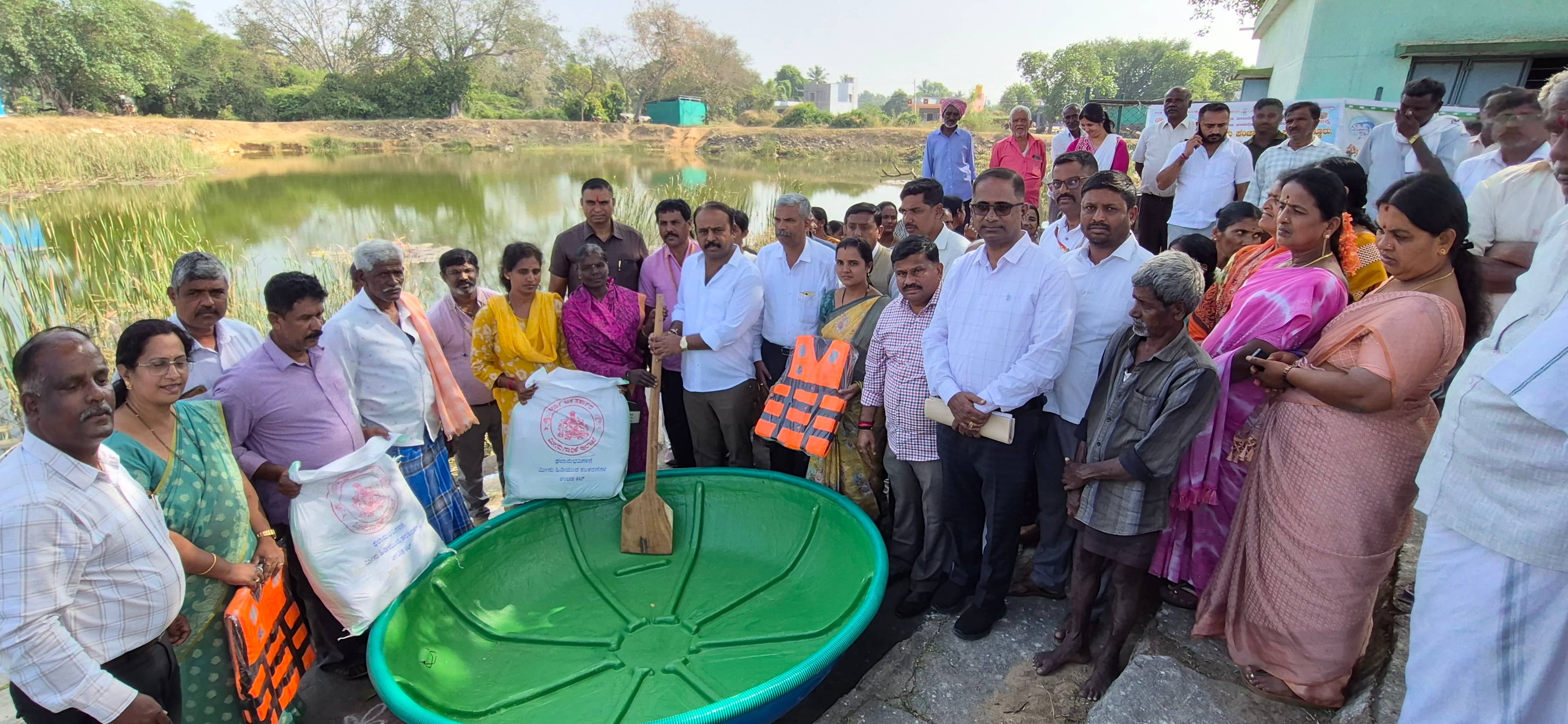 ಇದೇ ವೇಳೆ ಪುಟ್ಡಕಟ್ಟೆಗೆ 5 ಸಾವಿರ ಮೀನು ಮರಿಗಳನ್ನು ಶಾಸಕರು ನೀರಿಗೆ ಬಿಟ್ಟರು. ಮೀನುಗಾರಿಕಾ ಇಲಾಖೆಯಿಂದ ಇಬ್ಬರು ಫಲಾನುಭವಿಗಳಿಗೆ ತೆಪ್ಪ, ಅರಿಗೋಲು, ಬಲೆ, ರಕ್ಷಣಾ ಸಾಮಗ್ರಿಗಳನ್ನು ಉಚಿತವಾಗಿ ನೀಡಲಾಯಿತು.ಈ ವೇಳೆ ಜಿಪಂ ಮಾಜಿ ಸದಸ್ಯ ಅಣ್ಣೂರು ರಾಜೀವ, ಗ್ರಾಪಂ ಅಧ್ಯಕ್ಷೆ ಅಶ್ವಿನಿ, ಉಪಾಧ್ಯಕ್ಷ ನಾಗರಾಜು, ಸದಸ್ಯರಾದ ಚಂದ್ರಶೇಖರ್, ಪಿಣ್ಣಸತೀಶ್, ಮಂಜುಕುಮಾರ್, ಗ್ರಾಪಂ ಮಹಿಳಾ ಒಕ್ಕೂಟದ ಅಧ್ಯಕ್ಷೆ ಭಾರತಿ ಶ್ರೀ ಹರ್ಷ, ಮೀನುಗಾರಿಕಾ ಇಲಾಖೆ ಸಹಾಯಕ ನಿರ್ದೇಶಕಿ ಪುಷ್ಪಲತಾ, ಪಿಡಿಒ ಹರೀಶ್, ಎನ್ಆರ್ಎಲ್ಎಂ ಸಿಬ್ಬಂದಿ ರವೀಂದ್ರಗೌಡ, ಅಂಬರಹಳ್ಳಿ ಸ್ವಾಮಿ, ಪ್ರದೀಪ್, ಗುರುಲಿಂಗಸ್ವಾಮಿ, ಸುಮಾ ಪಾಲ್ಗೊಂಡಿದ್ದರು.