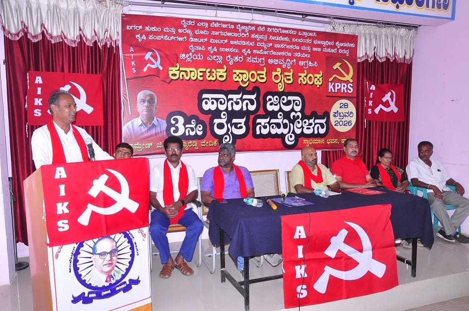 ರೈತರ ಎಲ್ಲಾ ಬೆಳೆಗಳಿಗೆ ವೈಜ್ಞಾನಿಕ ಬೆಲೆ ನಿಗಧಿಗೊಳಿಸಬೇಕು. ಬಗರ್ಹುಕುಂ ಮತ್ತು ಅರಣ್ಯ ಭೂಮಿ ಸಾಗುವಳಿದಾರರಿಗೆ ಹಕ್ಕುಪತ್ರ ನೀಡಬೇಕು, ಬಲವಂತದ ಭೂಸ್ವಾಧೀನವನ್ನು ಕೈಬಿಡಬೇಕು ಎಂದು ಕರ್ನಾಟಕ ಪ್ರಾಂತ ರೈತ ಸಂಘದ (ಕೆ.ಪಿ.ಆರ್.ಎಸ್) ರಾಜ್ಯಾಧ್ಯಕ್ಷ ಬಸವರಾಜು ಆಗ್ರಹಿಸಿದರು.ನಗರದ ಸ್ವಾಭಿಮಾನ ಭವನದಲ್ಲಿ ಕರ್ನಾಟಕ ಪ್ರಾಂತ ರೈತ ಸಂಘ (ಕೆಪಿಆರ್ಎಸ್) ವತಿಯಿಂದ ಶನಿವಾರ ಹಮ್ಮಿಕೊಳ್ಳಲಾಗಿದ್ದ ಹಾಸನ ಜಿಲ್ಲಾ 3ನೇ ರೈತ ಸಮ್ಮೇಳನವನ್ನು ಉದ್ಘಾಟಿಸಿ ಮಾತನಾಡಿದ ಅವರು, ಹಾಸನ ಜಿಲ್ಲೆಯ ರೈತರು ತೆಂಗು, ಮೆಕ್ಕೆಜೋಳ, ಆಲೂಗಡ್ಡೆ, ಶುಂಠಿ, ಅಡಿಕೆ, ಕಬ್ಬು, ಕಾಫಿ, ಹೊಗೆಸೊಪ್ಪು ಸೇರಿದಂತೆ ಹಲವು ಪ್ರಮುಖ ಬೆಳೆಗಳನ್ನು ಬೆಳೆಯುತ್ತಾರೆ. ಜೊತೆಗೆ ಹೈನುಗಾರಿಕೆ ಮತ್ತು ತರಕಾರಿ ಉತ್ಪಾದನೆಯಲ್ಲಿ ಕೂಡ ತೊಡಗಿದ್ದಾರೆ. ವರ್ಷಪೂರ್ತಿ ದುಡಿದರೂ ಉತ್ಪಾದನಾ ವೆಚ್ಚವೂ ವಾಪಸ್ ಬರದಂತಹ ಸಂಕಷ್ಟ ಪರಿಸ್ಥಿತಿ ನಿರ್ಮಾಣವಾಗಿದೆ. ಹವಾಮಾನ ಬದಲಾವಣೆಗಳಿಂದ ಮಳೆಯಾಶ್ರಿತ ಕೃಷಿ ಅಸ್ಥಿರಗೊಂಡಿರುವ ಹಿನ್ನೆಲೆಯಲ್ಲಿ ರೈತರು ಕೊಳವೆ ಬಾವಿಗಳ ಮೇಲೆ ಅವಲಂಬಿತರಾಗಿದ್ದಾರೆ. ಇದುವರೆಗೆ ೧೦ ಎಚ್ಪಿ ವರೆಗಿನ ಮೋಟಾರ್ಗಳಿಗೆ ಉಚಿತ ವಿದ್ಯುತ್ ನೀಡಲಾಗುತ್ತಿತ್ತು. ಆದರೆ ಕೇಂದ್ರದ ನರೇಂದ್ರ ಮೋದಿ ನೇತೃತ್ವದ ಸರ್ಕಾರ ವಿದ್ಯುತ್ ಖಾಸಗೀಕರಣ ಮಸೂದೆ ಮೂಲಕ ಕೃಷಿ ಪಂಪ್ಸೆಟ್ಗಳಿಗೆ ಡಿಜಿಟಲ್ ಸ್ಮಾರ್ಟ್ ಮೀಟರ್ ಅಳವಡಿಸಲು ಮುಂದಾಗಿದೆ ಎಂದು ಟೀಕಿಸಿದರು.