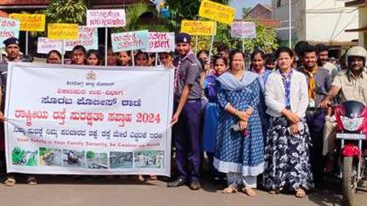 ಸೊರಬ ಪಟ್ಟಣದಲ್ಲಿ ಪೊಲೀಸ್ ಇಲಾಖೆ ವತಿಯಿಂದ ರಾಷ್ಟ್ರೀಯ ರಸ್ತೆ ಸುರಕ್ಷತಾ ಸಪ್ತಾಹದ ನಿಮಿತ್ತ ಬೈಕ್ ಜಾಥಾ ನಡೆಸಲಾಯಿತು.