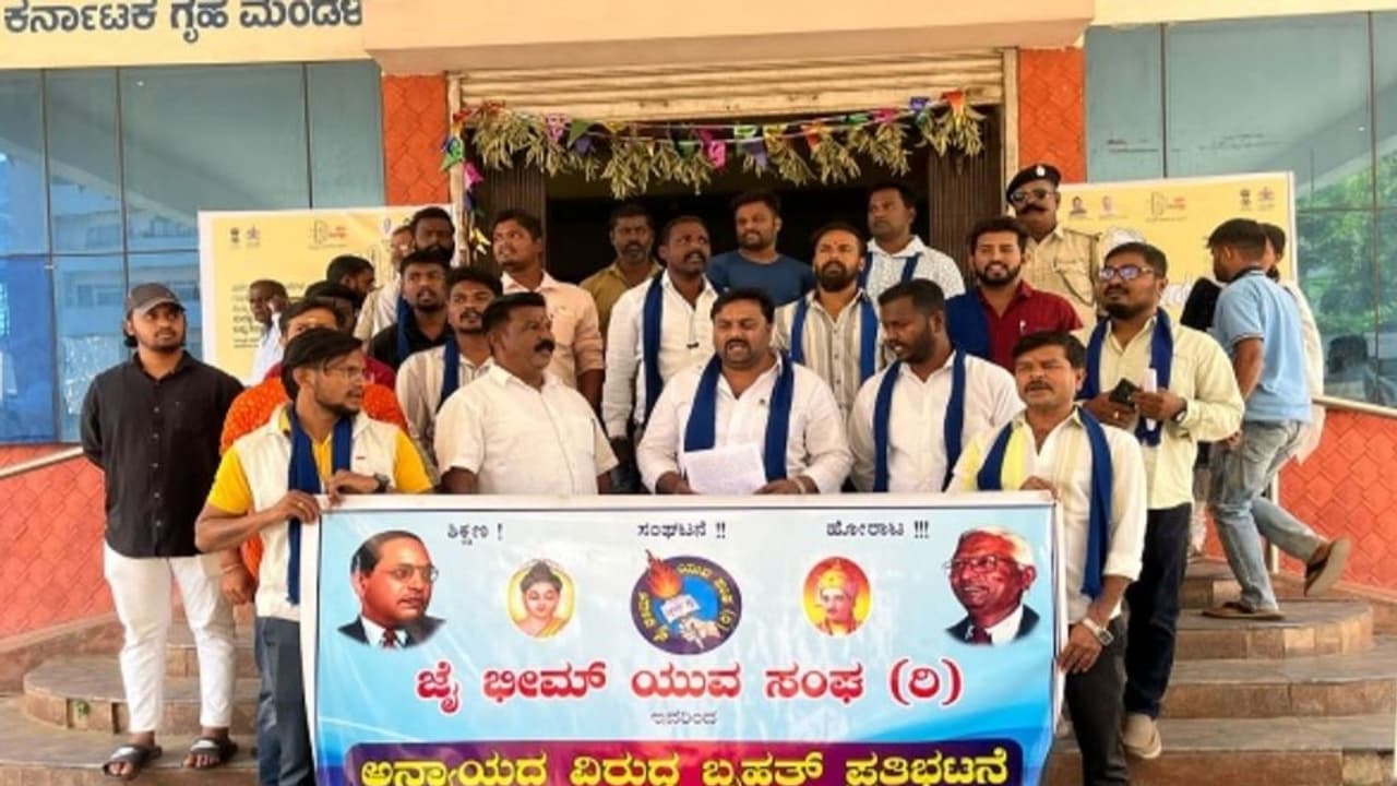 ಜೈ ಭೀಮ್ ಯುವ ಸಂಘದ ಕಾರ್ಯಕರ್ತರು ಶನಿವಾರ ತಹಸೀಲ್ದಾರ್ ಕಚೇರಿ ಎದುರು ಪ್ರತಿಭಟನೆ ನಡೆಸಿದರು.