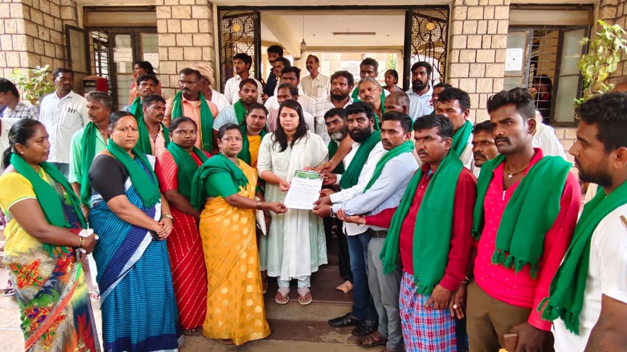 ಹೊಸಪೇಟೆ: ಜಮೀನು ವಿಚಾರವಾಗಿ ರೈತರಿಗೆ ನೀಡಿರುವ ನೋಟಿಸ್ ಹಿಂಪಡೆಯುವಂತೆ ರೈತ ಸಂಘ ಹಾಗೂ ಹಸಿರು ಸೇನೆಯಿಂದ ನಗರದಲ್ಲಿ ಸೋಮವಾರ ತಹಸೀಲ್ದಾರ್ ಶ್ರುತಿ ಎಂ.ಎಂ. ಅವರಿಗೆ ಮನವಿ ಸಲ್ಲಿಸಲಾಯಿತು.