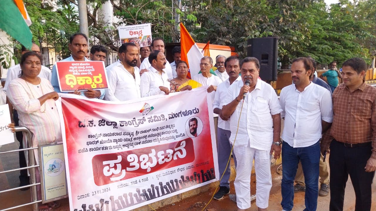 ದ.ಕ. ಜಿಲ್ಲಾ ಕಾಂಗ್ರೆಸ್ ವತಿಯಿಂದ ಮಂಗಳವಾರ ನಗರದ ಮಿನಿ ವಿಧಾನಸೌಧದ ಎದುರು ಪ್ರತಿಭಟನೆ ನಡೆಯಿತು.