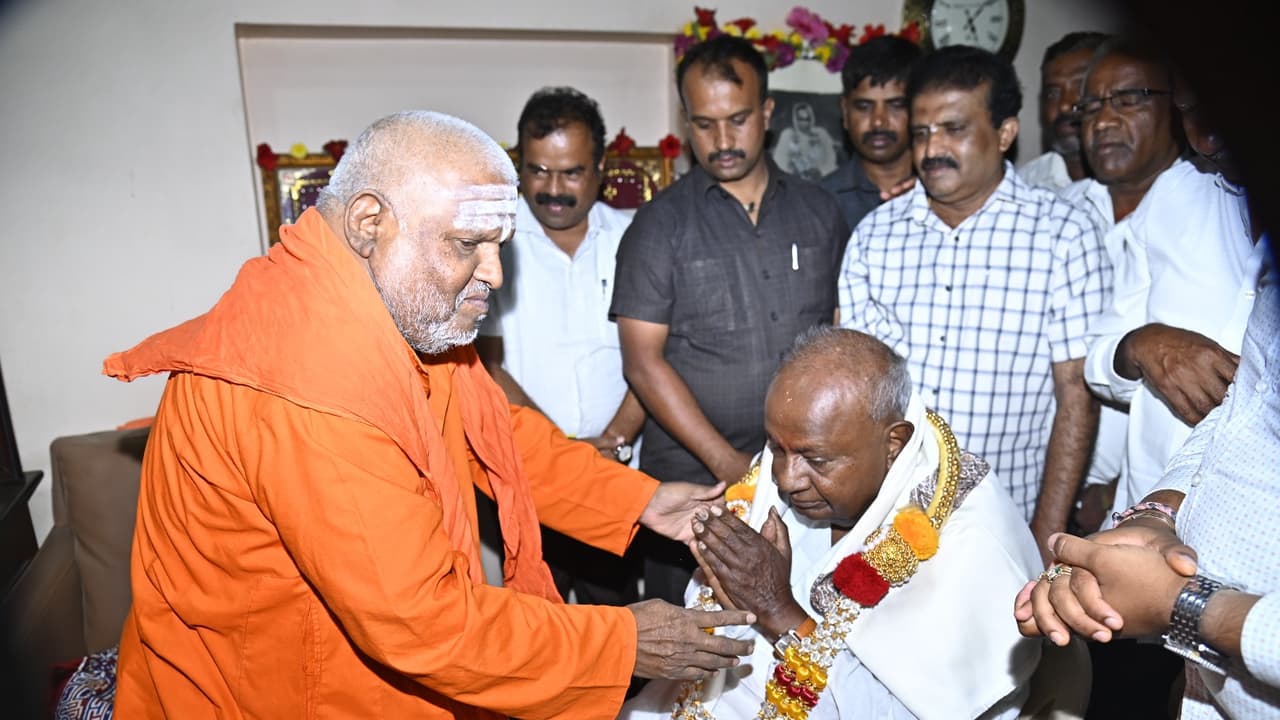 ಕಲ್ಪತರು ನಾಡಿನ ಸುಪ್ರಸಿದ್ಧ ಶ್ರೀಮಠಕ್ಕೆ ಮಾಜಿ ಪ್ರಧಾನಿ ಎಚ್.ಡಿ. ದೇವೇಗೌಡರು ಶನಿವಾರ ಮಧ್ಯಾಹ್ನ ಭೇಟಿ ನೀಡಿ ಶ್ರೀ ಗುರುಪರದೇಶಿಕೇಂದ್ರ ಸ್ವಾಮೀಜಿಗಳವರಿಂದ ಆಶೀರ್ವಾದ ಪಡೆದರು.