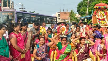 ಹೊಸಪೇಟೆಯಲ್ಲಿ ಭಾನುವಾರ ಆರ್ಯವೈಶ್ಯ ಸಮಾಜದಿಂದ ವಾಸವಿ ಜಯಂತಿಯಲ್ಲಿ ನಗರೇಶ್ವರ ದೇವಸ್ಥಾನದಿಂದ ಆರ್ಯವೈಶ್ಯ ಸಮಾಜ ಮಹಿಳೆಯರು ಪೂರ್ಣಕುಂಭದೊಂದಿಗೆ ಕುಲದೇವತೆ ವಾಸವಿಯ ಭವ್ಯ ಮೆರವಣಿಗೆಯಲ್ಲಿ ಭಾವಹಿಸಿರುವುದು.