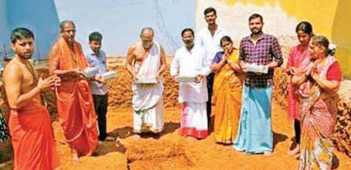ಉಡುಪಿ: ಇಲ್ಲಿನ ಕುಂಜಿಬೆಟ್ಟು ಶ್ರೀ ರುಕ್ಮಣಿ ಸತ್ಯಭಾಮಾ ಸಹಿತ ಗೋಪಾಲಕೃಷ್ಣ ದೇವಸ್ಥಾನದ ನೂತನ ಗರ್ಭಗುಡಿಗೆ ದೊಡ್ಡಣಗುಡ್ಡೆ ಶ್ರೀ ಚಕ್ರಪೀಠ ಸುರಪೂಜಿತೆ ಶ್ರೀ ದುರ್ಗಾ ಆದಿಶಕ್ತಿ ಕ್ಷೇತ್ರದ ಆಡಳಿತ ಧರ್ಮದರ್ಶಿ ಶ್ರೀ ರಮಾನಂದ ಗುರೂಜಿ ನೇತೃತ್ವದಲ್ಲಿ ಶ್ರೀಶ ಆಚಾರ್ಯ ಕೊರಂಗ್ರಪಾಡಿ ಅವರ ಪೌರೋಹಿತ್ಯದಲ್ಲಿ ಶಿಲಾನ್ಯಾಸ ನೆರವೇರಿತು.
