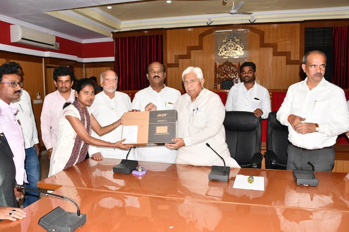 ಗದಗ: ಜಿಲ್ಲಾ ಉಸ್ತುವಾರಿ ಸಚಿವ ಎಚ್.ಕೆ. ಪಾಟೀಲ ಅವರು ನಗರದ ಜಿಲ್ಲಾಧಿಕಾರಿಗಳ ಕಚೇರಿ ಸಭಾಂಗಣದಲ್ಲಿ ನಗರಸಭೆಯ ಶೇ. 18, ಎಸ್ಎಫ್ಸಿ ಶೇ. 15 ಹಾಗೂ ನಗರಸಭೆಯ ಅನುದಾನದಡಿ ವಿದ್ಯಾರ್ಥಿಗಳಿಗೆ ಉಚಿತ ಲ್ಯಾಪ್ಟಾಪ್ ವಿತರಿಸಿದರು.