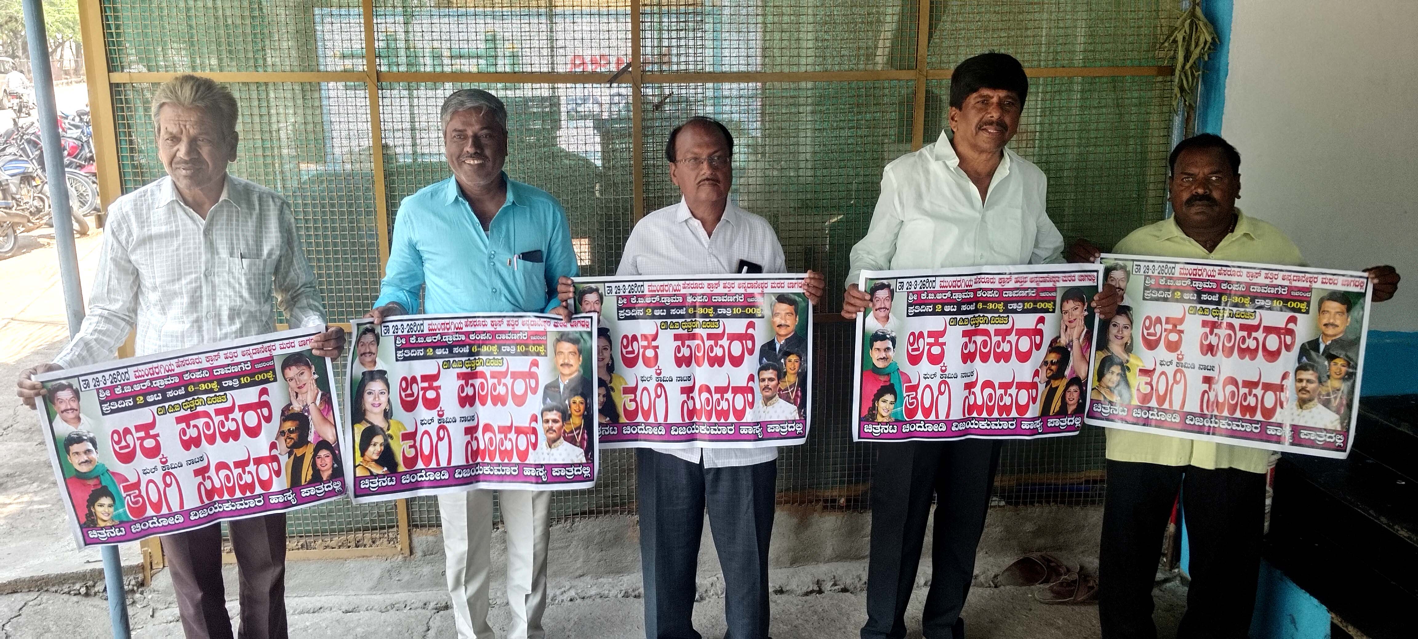 ದಾವಣಗೇರೆಯ ಕೆ.ಬಿ.ಆರ್. ಡ್ರಾಮಾ ಕಂಪನಿ ತಂಡದಿಂದ ಮಾ. 29ರಿಂದ ಮುಂಡರಗಿ ಪಟ್ಟಣದ ಹೆಸರೂರು ರಸ್ತೆಯಲ್ಲಿರುವ ಅನ್ನದಾನೀಶ್ವರ ಮಹಾಸ್ವಾಮೀಜಿಯವರ ಜಾಗೆಯಲ್ಲಿ ನಾಟಕ ಪ್ರದರ್ಶನ ಜರುಗಲಿದೆ ಎಂದು ತಂಡದ ಮಾಲೀಕ ಶ್ರೀಕಂಟೇಶ ಚಿಂದೋಡಿ ಹೇಳಿದರು.