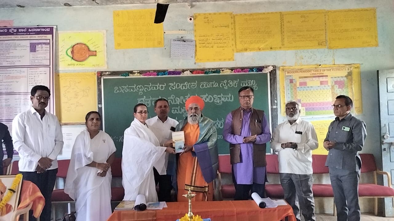 ಬಸವಕಲ್ಯಾಣದ ಸರ್ಕಾರಿ ಪ್ರೌಢಶಾಲೆಯಲ್ಲಿ ಕಲ್ಯಾಣಮ್ಮ ಶರಣಿಯರ ಶಾಲಾ ಶತಮಾನೋತ್ಸವ ಹಾಗೂ ಬಸವಕಲ್ಯಾಣ ತಾಲೂಕು ಶರಣ ಸಾಹಿತ್ಯ ಪರಿಷತ್ತಿನ ದಿನದರ್ಶಿಕೆ ಬಿಡುಗಡೆ ಕಾರ್ಯಕ್ರಮದಲ್ಲಿ ಜಯಶಾಂತಲಿಂಗ ಮಹಾಸ್ವಾಮಿಗಳು ಆಶೀರ್ವಚನ ನೀಡಿದರು.