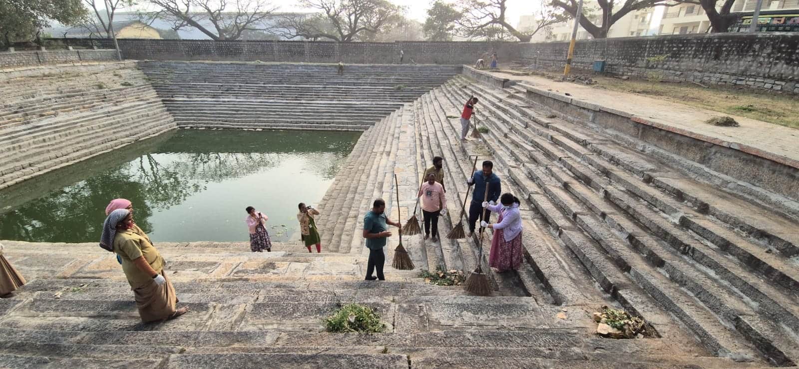 ಇದಕ್ಕೆ ತಕ್ಷಣವೇ ಸ್ಪಂದಿಸಿದ ಪೌರಾಯುಕ್ತೆ ಯು.ಪಿ.ಪಂಪಾಶ್ರೀ ಅವರು ಆರೋಗ್ಯ ನಿರೀಕ್ಷಕರು, ಕಮ್ಯುನಿಟಿ ಮೊಬಲೈಸರ್ಸ್, ಸ್ವಚ್ಛತಾ ಸಿಬ್ಬಂದಿ, ವಿಶ್ವಕರ್ಮ ಸಮಾಜದ ಪದಾಧಿಕಾರಿಗಳನ್ನು ಒಗ್ಗೂಡಿಸಿಕೊಂಡು ಕೊಳದ ಸ್ವಚ್ಛತಾ ಕಾಮಗಾರಿಯನ್ನು ನಡೆಸಿದರು. ಕೊಳದ ಸುತ್ತಲೂ ಗಿಡ-ಗಂಟೆಗಳನ್ನೆಲ್ಲಾ ತೆರವುಗೊಳಿಸಿದರು. ಕೊಳದ ಸುತ್ತಲಿನ ಆವರಣವನ್ನೆಲ್ಲಾ ಸಂಪೂರ್ಣವಾಗಿ ಸ್ವಚ್ಛಗೊಳಿಸಿ ಕೊಳ, ಅರಳೀಕಟ್ಟೆ, ಬನ್ನೀಮರ ಹಾಗೂ ಸುತ್ತಲಿನ ಪರಿಸರ ಸುಂದರವಾಗಿ ಕಾಣುವಂತೆ ಮಾಡುವಲ್ಲಿ ಯಶಸ್ವಿಯಾದರು.ಈ ಪ್ರದೇಶದಲ್ಲಿ ಖಾಲಿ ಇದ್ದ ಜಾಗಗಳಲ್ಲಿ ಗಿಡಗಳನ್ನು ನೆಡುವ ಮೂಲಕ ಪರಿಸರ ಪ್ರೇಮವನ್ನು ಮೆರೆದರು. ಇದರಿಂದ ಕೊಳದ ಪರಿಸರ ಹೆಚ್ಚು ಆಕರ್ಷಣೀಯವಾಗಿ ಕಾಣುವಂತೆ ಮಾಡಿದರು. ಕಲ್ಯಾಣಿ ಸ್ವಚ್ಛತೆ: ಡಾ.ನಿಶ್ಚಲಾನಂದನಾಥ ಸ್ವಾಮೀಜಿ ಶ್ಲಾಘನೆ