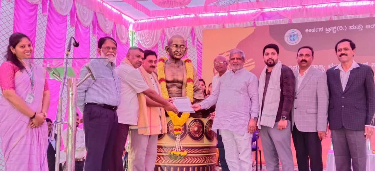 ಸಂಸ್ಥೆ ಅಧ್ಯಕ್ಷ, ಮಾಜಿ ಶಾಸಕ ಬಿ.ರಾಮಕೃಷ್ಣ ಮಾತನಾಡಿ, ಗ್ರಾಮೀಣ ಭಾಗದ ಜನರಲ್ಲಿ ಗಾಂಧಿ ತತ್ವಗಳ ಅರಿವು ಮತ್ತು ಅನುಷ್ಠಾನ ಗೊಳಿಸು ಉದ್ದೇಶದಿಂದ ಸಂಸ್ಥೆ ಆವರಣದಲ್ಲಿ ಗಾಂಧಿ ಭವನ ನಿರ್ಮಾಣಕ್ಕೆ ಉಚಿತವಾಗಿ ಅಗತ್ಯ ನಿವೇಶನ ಒದಗಿಸುವುದಾಗಿ ಹೇಳಿದರು.ಗಾಂಧಿ ಸ್ಮಾರಕ ಮಾನವ ಸಂಪನ್ಮೂಲ ಕೇಂದ್ರ ಸ್ಥಾಪಿಸಲು ಗಾಂಧಿ ಸ್ಮಾರಕ ನಿಧಿ ಅಧ್ಯಕ್ಷ ನೋಡೋಜ ಡಾ.ವೋಡೇ ಪಿ.ಕೃಷ್ಣ ಅವರಿಗೆ ಭವನ ನಿರ್ಮಾಣಕ್ಕೆ ನಿವೇಶನ ದೊರಕಿಸುವ ಭರವಸೆ ಪತ್ರ ಹಸ್ತಾಂತರಿಸಿ ಇದಕ್ಕೆ ಬೇಕಾದ 2 ಎಕರೆ ಭೂಮಿಯನ್ನು ಸಂಸ್ಥೆ ಉಚಿತವಾಗಿ ನೀಡಲಿದೆ ಎಂದು ಘೋಷಿಸಿದರು.