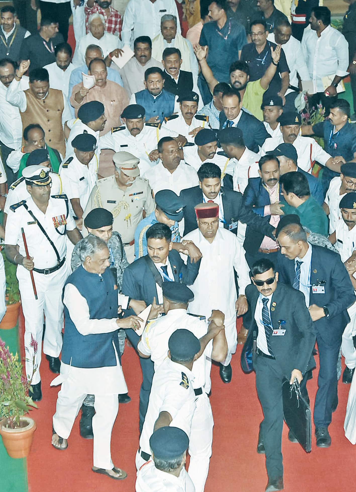 - ಮೊದಲ, ಕೊನೇ ಪ್ಯಾರಾ ಓದಿ ವಾಕೌಟ್ । ಕಾಂಗ್ರೆಸ್ಸಿಗರ ಆಕ್ರೋಶ, ಗೌರ್ನರ್ ತಡೆದು ನಿಲ್ಲಿಸಲೆತ್ನ