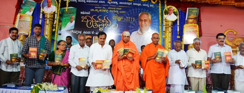 ಕಾರ್ಯಕ್ರಮ ಉದ್ಘಾಟಿಸಿದ ಮಾಜಿ ಸಚಿವ ಸಿ.ಎಸ್.ಪುಟ್ಟರಾಜು ಮಾತನಾಡಿ, ಕಾತ್ಯನಹಳ್ಳಿಯ ಮಣ್ಣು ಜಾನಪದ ವಿದ್ವಾಂಸ ರಾಮಣ್ಣ, ರೈತ ಹೋರಾಟಗಾರ ಕೆ.ಎಸ್.ಪುಟ್ಟಣ್ಣಯ್ಯ ಸೇರಿದಂತೆ ಹಲವು ಪ್ರಸಿದ್ಧ ನಾಯಕರು, ಕ್ರೀಡಾಪಟುಗಳಿಗೆ ಜನ್ಮ ನೀಡಿದೆ. ಸಾಹಿತ್ಯ ಕ್ಷೇತ್ರಕ್ಕೆ ಒತ್ತು ನೀಡುವ ಉದ್ದೇಶದಿಂದ ನಾನು ಮೊದಲ ಬಾರಿ ಶಾಸಕನಾದಾಗ ಪಾಂಡವಪುರದಲ್ಲಿ ಒಂದು ತಿಂಗಳಕಾಲ ಕನ್ನಡ ಹಬ್ಬವನ್ನು ಆಚರಣೆ ಮಾಡುವ ಮೂಲಕ ಪ್ರೋತ್ಸಾಹಿಸುವ ಕೆಲಸ ಮಾಡಿದ್ದೇನೆ ಎಂದರು.ಈ ವೇಳೆ ಕ್ಯಾತನಹಳ್ಳಿ ರಾಮಣ್ಣರ ಜಾನಪದ ತಿಳಿಜಲ ಅಭಿನಂದನೆ ಗ್ರಂಥ ಹಾಗೂ ಮೂರು ಕೃತಿಗಳನ್ನು ವಿಶ್ರಾಂತ ಕುಲಪತಿ ಡಾ.ಅಂಬಳಿಕೆ ಹಿರಿಯಣ್ಣ ಸೇರಿದಂತೆ ವೇದಿಕೆ ಮೇಲಿನ ಗಣ್ಯರು ಬಿಡುಗಡೆ ಮಾಡಿದರು. ಪು.ತಿ.ನ ಟ್ರಸ್ಟ್ ಅಧ್ಯಕ್ಷ ಪ್ರೊ.ಎಂ.ಕೃಷ್ಣೇಗೌಡ ಅವರು ಅಭಿನಂಧ ಗ್ರಂಥದ ಕುರಿತು ಮಾತನಾಡಿದರು. ಇದೇ ವೇಳೆ ಕ್ಯಾತನಹಳ್ಳಿ ರಾಮಣ್ಣ ಮತ್ತು ದಂಪತಿಗಳನ್ನು ಅಭಿನಂದಿಸಲಾಯಿತು.