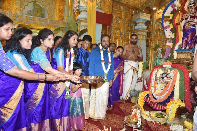 ಕನ್ನಡಪ್ರಭ ವಾ ರ್ತೆ, ತುಮಕೂರುದಸರಾ ಪ್ರಯುಕ್ತ ನಗರದ ಸರ್ಕಾರಿ ಪದವಿ ಪೂರ್ವ ಕಾಲೇಜು ಮೈದಾನದ ಧಾರ್ಮಿಕ ಮಂಟಪದಲ್ಲಿ ಪ್ರತಿಷ್ಠಾಪಿಸಿರುವ ಶ್ರೀ ಚಾಮುಂಡೇಶ್ವರಿ ದೇವಿಯ ದರ್ಶನ ಪಡೆದು ತಾಯಿಯ ಕೃಪೆಗೆ ಪಾತ್ರರಾಗಬೇಕೆಂದು ಜಿಲ್ಲಾಧಿಕಾರಿ ಶುಭ ಕಲ್ಯಾಣ್ ಜಿಲ್ಲೆಯ ಜನತೆಗೆ ಮನವಿ ಮಾಡಿದರು.ಅವರಿಂದು ಚಂದ್ರಘಂಟಾ (ಮೀನಾಕ್ಷಿ) ಅಲಂಕಾರದಲ್ಲಿದ್ದ ಶ್ರೀ ಚಾಮುಂಡಿ ತಾಯಿಗೆ ಹೋಮ, ಪೂರ್ಣಾಹುತಿ ಸಲ್ಲಿಸಿದ ನಂತರ ಮಾತನಾಡುತ್ತಾ, ಸಾರ್ವಜನಿಕರು ದಸರಾ ಉತ್ಸವದಲ್ಲಿ ಭಾಗವಹಿಸಲು ಅಕ್ಟೋಬರ್ 2ರವರೆಗೂ ಜಿಲ್ಲೆಯ ಪ್ರತಿ ತಾಲೂಕಿನಿಂದ 250 ವಿಶೇಷ ಬಸ್ಗಳ ವ್ಯವಸ್ಥೆ ಮಾಡಲಾಗಿದ್ದು, ಸಾರ್ವಜನಿಕರು ಇದರ ಸದುಪಯೋಗ ಪಡೆದುಕೊಳ್ಳಬೇಕೆಂದು ಮನವಿ ಮಾಡಿದರು. ಹೆಲಿಕಾಪ್ಟರ್ನಿಂದ ತುಮಕೂರು ನಗರದ ಸೌಂದರ್ಯವನ್ನು ಸವಿಯಲು ಇದೇ ಮೊದಲ ಬಾರಿಗೆ ಹೆಲಿ ರೈಡ್ ಹಾಗೂ ಹಾಟ್ ಏರ್ ಬಲೂನ್ ವ್ಯವಸ್ಥೆ ಮಾಡಲಾಗಿದೆ. ಅದೇ ರೀತಿ ಬಣ್ಣ-ಬಣ್ಣದ ವಿದ್ಯುತ್ ದೀಪಾಲಂಕಾರದಿಂದ ಕಂಗೊಳಿಸುತ್ತಿರುವ ನಗರವನ್ನು ರಾತ್ರಿ ವೇಳೆ ವೀಕ್ಷಿಸಲು ಲಂಡನ್ ಮಾದರಿಯ ಉಚಿತ ಡಬಲ್ ಡೆಕ್ಕರ್ ಬಸ್ಸಿನ ವ್ಯವಸ್ಥೆ ಮಾಡಲಾಗಿದ್ದು, ಈಗಾಗಲೇ 2000 ಕ್ಕೂ ಹೆಚ್ಚು ಜನರು ಡಬಲ್ ಡೆಕ್ಕರ್ ಬಸ್ಸಿನ ಮೂಲಕ ಉಚಿತ ಪ್ರಯಾಣ ಮಾಡಿ ದೀಪಾಲಂಕಾರ ಹಾಗೂ ದೀಪ ಚಿತ್ತಾರಗಳನ್ನು ವೀಕ್ಷಿಸಿ ಕಣ್ತುಂಬಿಕೊಂಡಿದ್ದಾರೆ.ನಗರದ ಮಹಾತ್ಮ ಗಾಂಧಿ ಕ್ರೀಡಾಂಗಣದಲ್ಲಿ ಸೆಪ್ಟೆಂಬರ್ 28ರಂದು ಕಾಲೇಜು ವಿದ್ಯಾರ್ಥಿಗಳಿಂದ ಪಂಜಿನ ಕವಾಯತು ಕಾರ್ಯಕ್ರಮ ನಡೆಯಲಿದೆ. ನಂತರ ಸರಿಗಮಪ ಖ್ಯಾತಿಯ ಕಂಬದ ರಂಗಯ್ಯ ಅವರು ಸಂಗೀತ ರಸಸಂಜೆ ಕಾರ್ಯಕ್ರಮದ ಮೂಲಕ ಗಾನಪ್ರಿಯರನ್ನು ರಂಜಿಸಲಿದ್ದಾರೆ ಎಂದು ಹೇಳಿದರು.