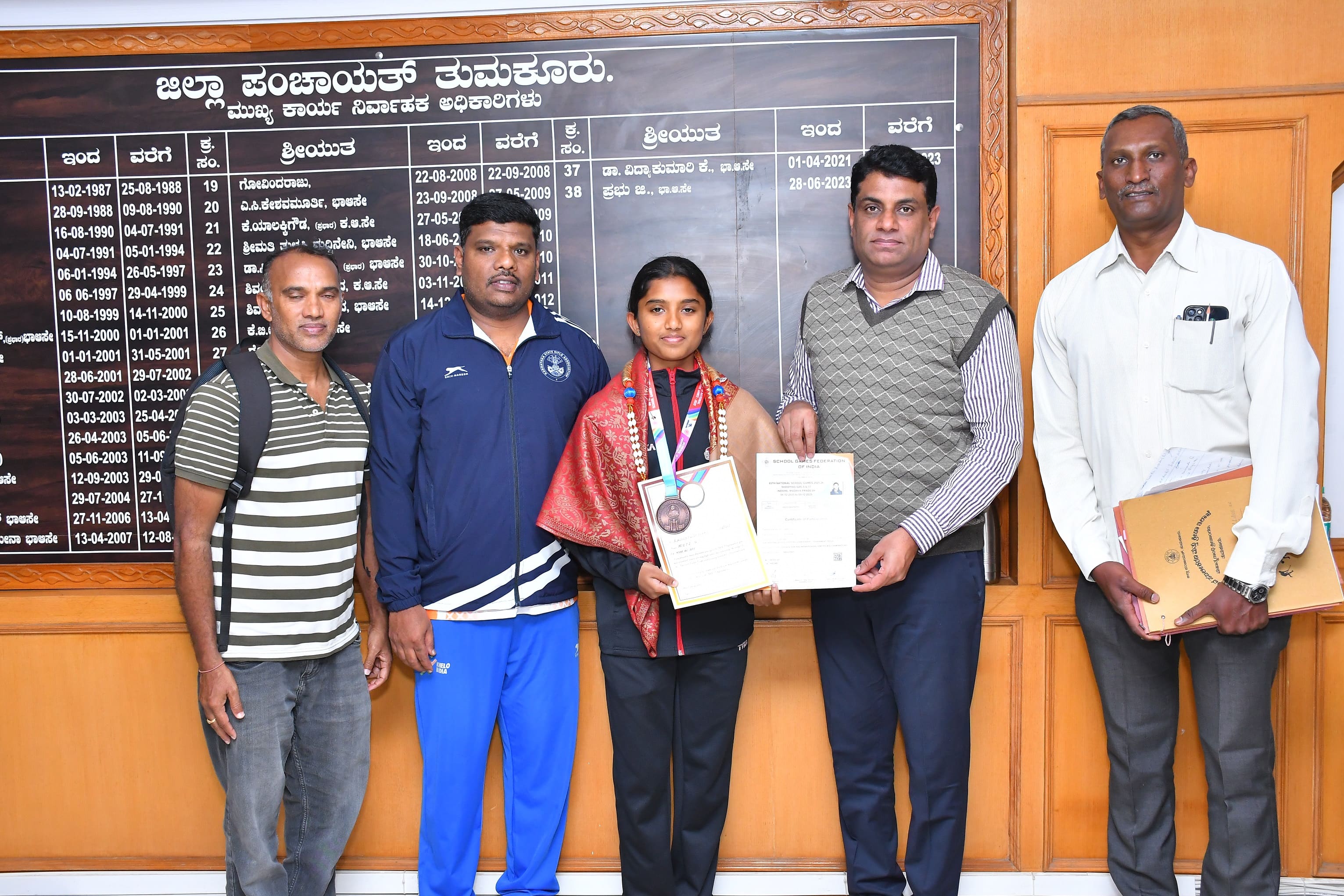 17 ವರ್ಷ ವಯೋಮಿತಿಯ ರೈಫಲ್ ಶೂಟಿಂಗ್ ಸ್ಪರ್ಧೆಯಲ್ಲಿ ತುಮಕೂರಿನ ವಿವೇಕಾನಂದ ಶೂಟಿಂಗ್ ಅಕಾಡೆಮಿಯ ಅದಿತಿ .ಜಿ. ಭಾಗವಹಿಸಿ ಕಂಚಿನ ಪದಕ ಪಡೆದಿದ್ದಾರೆ.
