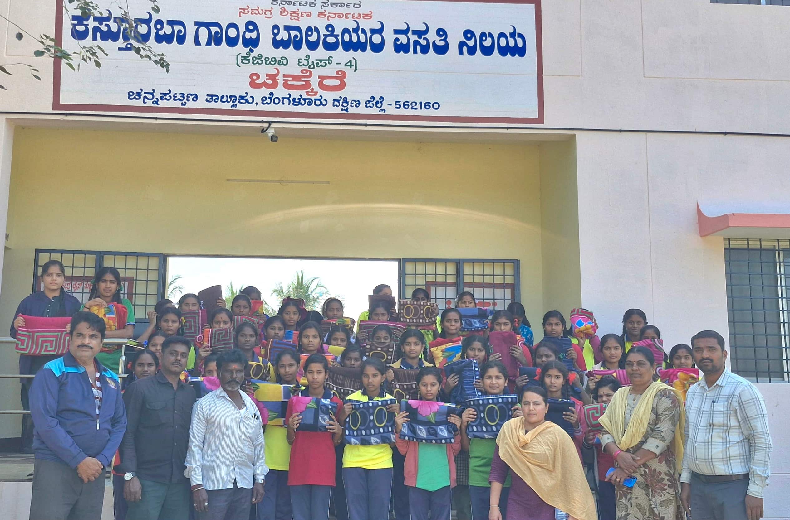 ಚನ್ನಪಟ್ಟಣ ತಾಲೂಕಿನ ಚಕ್ಕೆರೆ ಗ್ರಾಮದಲ್ಲಿ ಪ್ರಾರಂಭಿಸಿರುವ ಕಸ್ತೂರಬಾ ಗಾಂಧಿ ಬಾಲಕಿಯರ ಉಚಿತ ವಸತಿ ನಿಲಯದ ವಿದ್ಯಾರ್ಥಿನಿಯರಿಗೆ ಸಮಾಜ ಸೇವಕ ಹಾಗೂ ಬೊಂಬೆನಾಡು ಕಟ್ಟಡ ಕಾರ್ಮಿಕರ ಸಂಘದ ಅಧ್ಯಕ್ಷರಾದ ಕರ್ಣ ಅವರು ಬೆಡ್ಶೀಟ್ಗಳನ್ನು ವಿತರಿಸಿದರು.