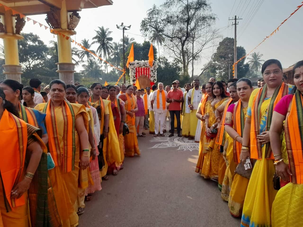 ವಿವಿಧ ಕ್ಷೇತ್ರಗಳ ಸಾಧಕರಾದ ರಾಜೇಂದ್ರ ಪ್ರಸಾದ ಭಟ್ಟ, ಸುರೇಶ ಮತ್ತು ಸರಿತಾ ಮುರಕುಂಬಿ, ಗಜಾನನ ನಾಯ್ಕ, ನಾಗೇಶ ಯಲ್ಲಾಪುರಕರ್, ಚಂದ್ರಶೇಖರ ನೇತ್ರೆಕರ್, ಕಿಶನ್ ಗುರುಸ್ವಾಮಿ, ಸಂತೋಷ ಮರಾಠಿ, ಜಿ.ಎಂ. ತಾಂಡುರಾಯನ್, ಸುಬ್ರಾಯ ಭಟ್ಟ ಆನೆಜಡ್ಡಿ, ಈರಣ್ಣ ಅಂಗಡಿ, ಮಹಾಬಲ ಪಾಟೀಲ ಅವರನ್ನು ಗೌರವಿಸಲಾಯಿತು.ನಗರ ಮಂಡಲದ ಅಧ್ಯಕ್ಷ ಸಂತೋಷ ಗುಡಿಗಾರ, ನಮಿತಾ ಬೀಡಿಕರ್ ಉಪಸ್ಥಿತರಿದ್ದರು. ಮಂಜುನಾಥ ಭಟ್ಟ ಸಂಗಡಿಗರು ವೇದಘೋಷಗೈದರು. ಪಲ್ಲವಿ ಭಟ್ಟ ಕವಾಳೆ ವೈಯಕ್ತಿಕ ಗೀತೆ ಹಾಡಿದರು. ಹಿಂದೂ ಸಮಾವೇಶ ಸಮಿತಿಯ ಮಂಡಲ ಅಧ್ಯಕ್ಷ ಕುಮಾರ ಸುಬ್ರಹ್ಮಣ್ಯ ಭಟ್ಟ ಹಂಡ್ರಮನೆ ಸ್ವಾಗತಿಸಿದರು. ಸಂಧ್ಯಾ ವಿಷ್ಣು ಪ್ರಾಸ್ತಾವಿಕವಾಗಿ ಮಾತನಾಡಿದರು. ಪಾರ್ವತಿ ಕಟ್ಟಿಮನಿ, ಕೇಬಲ್ ನಾಗೇಶ ನಿರ್ವಹಿಸಿದರು. ಚಂದನ ನಾಯ್ಕ ವಂದಿಸಿದರು.ಶೋಭಾಯಾತ್ರೆ