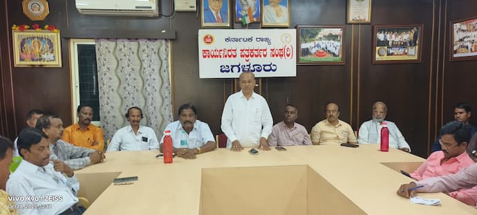 -21ಜೆ.ಜಿ.ಎಲ್.1:ಸಭೆಯಲ್ಲಿ ದಾವಣಗೆರೆ ಜಿಲ್ಲಾ ಕಾರ್ಯನಿರತ ಪತ್ರಕರ್ತರ ಸಂಘದ ಜಿಲ್ಲಾಧ್ಯಕ್ಷ ಇ.ಎಂ.ಮಂಜುನಾಥ್ ಮಾತನಾಡಿದರು.