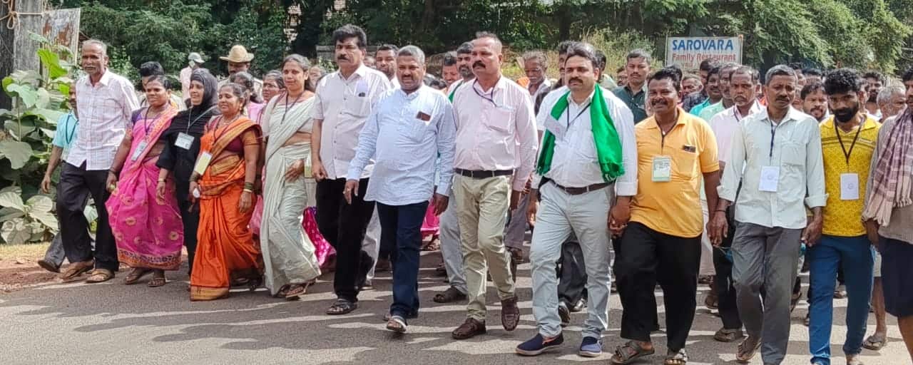 ಅರಣ್ಯವಾಸಿಗಳ ಕಾನೂನು ಜಾಗೃತಿ ಜಾಥಾ ಅಂಗವಾಗಿ ಪಟ್ಟಣದಲ್ಲಿ ಗುರುವಾರ ಪ್ರಮುಖ ರಸ್ತೆಗಳಲ್ಲಿ ಜಾಥಾದಲ್ಲಿ ಪಾಲ್ಗೊಂಡು ಮಹಾಸತಿ ದೇವಸ್ಥಾನದ ಸಭಾಂಗಣದಲ್ಲಿ ಅರಣ್ಯವಾಸಿಗಳ ಸಭೆ ಉದ್ದೇಶಿಸಿ ಮಾತನಾಡಿದರು.ಉತ್ತರ ಕನ್ನಡ ಜಿಲ್ಲೆಯ ಕೈಗಾ ಅಣುಸ್ಥಾವರ, ಸೀಬರ್ಡ್, ೫ ಜಲವಿದ್ಯುತ್ ಯೋಜನೆಗಳು, ರೈಲ್ವೆ ಮುಂತಾದ ವಿವಿಧ ಯೋಜನೆಗಳಿಗೆ ಲಕ್ಷಾಂತರ ಎಕರೆ ಅರಣ್ಯ ಕ್ಷೇತ್ರವನ್ನು ಅರಣ್ಯೇತರ ಚಟುವಟಿಕೆಗೆ ಬಿಡುಗಡೆಗೊಳಿಸಿದೆ. ಹೊನ್ನಾವರ ಶರಾವತಿ ಪಂಪ್ ಸ್ಟೋರೆಜ್ಗೆ 1 ಲಕ್ಷದ 2 ಸಾವಿರ ಎಕರೆ ಅರಣ್ಯ ಪ್ರದೇಶ ಯೋಜನೆಗೆ ನಿಗದಿಗೊಳಿಸಿದೆ ಎಂದು ತಿಳಿದುಬಂದಿದೆ. ಅದರಂತೆ, ಜೀವನಕ್ಕಾಗಿ, ವಾಸ್ತವ್ಯಕ್ಕಾಗಿ, ಸಾಗುವಳಿಗಾಗಿ ಜಿಲ್ಲೆಯಲ್ಲಿ ೮೦,೬೮೪ ಅರಣ್ಯವಾಸಿ ಕುಟುಂಬಗಳು ೫೦,೦೦೫ ಎಕರೆ ಅತಿಕ್ರಮಿಸಿದ್ದಾರೆ. ಅರಣ್ಯ ಭೂಮಿಯನ್ನು ಅರಣ್ಯೇತರ ಚಟುವಟಿಕೆಗೆ ನೀಡಲು ಸುಪ್ರಿಂ ಕೊರ್ಟಿನ ನಿರ್ಣಯ ಮತ್ತು ರಾಷ್ಟ್ರೀಯ ಅರಣ್ಯ ನೀತಿಯಿಂದಾಗಿ ಅರಣ್ಯವಾಸಿಗಳಿಗೆ ತೊಡಕಾಗಿದೆ. ಅರಣ್ಯವಾಸಿಗಳಿಗೆ ಸಾಗುವಳಿಗೆ ಅರಣ್ಯ ಭೂಮಿ ಹಕ್ಕಿಗೆ ಸಂಬಂಧ ಪಟ್ಟಂತೆ ಸರ್ಕಾರ ಗಂಭೀರವಾಗಿ ಚಿಂತಿಸಬೇಕು ಎಂದರು. ಸಭೆಯಲ್ಲಿ ಅರಣ್ಯವಾಸಿಗಳಿಗೆ ಡಿ. 6ರಂದು ಜಿಲ್ಲಾಧಿಕಾರಿಗಳಿಗೆ ಸಲ್ಲಿಸುವ ಆಕ್ಷೇಪ ಪತ್ರ ವಿತರಿಸಿದರು.ಸಭೆಯಲ್ಲಿ ತಾಲೂಕಾಧ್ಯಕ್ಷ ಮಂಜು ಮರಾಠಿ ಪ್ರಾಸ್ತಾವಿಕ ಮಾತನಾಡಿದರು. ಮಹೇಂದ್ರ ನಾಯ್ಕ ಕತಗಾಲ, ರಾಜು ಗೌಡ, ಸುಲೋಚನಾ ಮುಕ್ರಿ, ಜಗದೀಶ್ ನಾಯ್ಕ, ಸುನಿಲ್ ಆರ್ ಹರಿಕಂತ್ರ, ಯಾಕುಬ್, ಸಾರಂಬಿ, ಕುಸಂಬಿ ಅಹ್ಮದ್, ಸೀತಾರಾಮ ನಾಯ್ಕ, ಜ್ಯೋತಿ ಗಾವಡಿ, ಪಾಂಡುರಂಗ ದಿವಗಿ, ಜ್ಯೋತಿ ಅಂಬಿಗ, ಮಾದೇವ ಹಳ್ಳೇರ, ಜಗದೀಶ ಹರಿಕಂತ್ರ, ಮಂಗಲ ಗೋವಿಂದ ಹಳ್ಳೇರ, ಗುಲಾಬಿ ಹಳ್ಳೇರ, ಕಮಲಾಕ್ಷಿ ಹಳ್ಳೇರ, ವೆಂಕಟರಮಣ ಪಟಗಾರ, ಶೇಖರ ಪಟಗಾರ ಗಣಪತಿ ಮಾಸ್ತಿ, ರಾಜ ಮುಕ್ರಿ, ಜಯಂತ ಮರಾಠಿ, ಗಣಪತಿ ಮರಾಠಿ, ಯೋಗೇಂದ್ರ ಚಿದಾನಂದ ಇತರರಿದ್ದರು. ನಿರಾಶ್ರಿತರಾಗದಂತೆ ಎಚ್ಚರಿಕೆ ವಹಿಸಲಿ