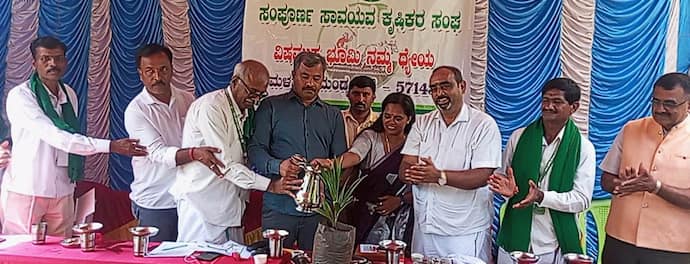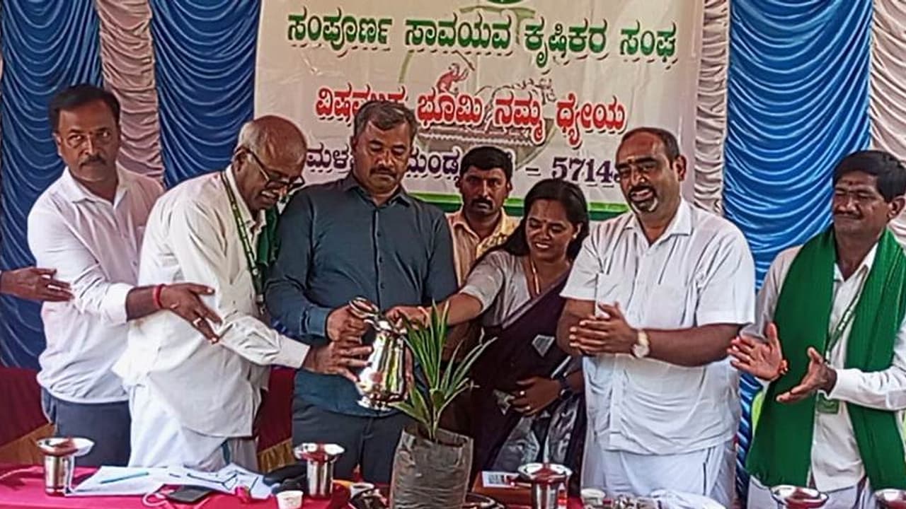 ನಾವು ಮತ್ತು ನಮ್ಮ ಭೂಮಿ ರಸಗೊಬ್ಬರ ಬಳಕೆಗೆ ಒಗ್ಗಿದ್ದೇವೆ. ಒಮ್ಮೆಲೆ ಸಾವಯವ ಪದ್ಧತಿ ಸಾಧ್ಯವಿಲ್ಲ ಎಂಬ ಭಾವನೆ ಬಿಟ್ಟು ಭೂಮಿಗೆ ವಿಷ ನೀಡಿದರೆ ನಮಗೆ ಸಿಗುವುದು ವಿಷವೇ. ಸಾವಯವ ಕೃಷಿ ಅಳವಡಿಸಿಕೊಂಡು ಉತ್ತಮ ಲಾಭ ಗಳಿಸಿ ಎಂದು ತಿಳಿಸಿದರು.ಮಳವಳ್ಳಿ ಸಾವಯವ ಕೃಷಿಕರ ಸಂಘದ ಅಧ್ಯಕ್ಷ ಎಂ.ಎನ್.ಮಹೇಶ್ ಕುಮಾರ್ ಮಾತನಾಡಿ, ರೈತರು ತಮ್ಮಲ್ಲಿನ ಕೀಳರಿಮೆ ಬಿಟ್ಟು ಎರಡನೇ ಶನಿವಾರ ನಮ್ಮ ಸಂಘದ ವತಿಯಿಂದ ನಡೆಯುವ ಕಾರ್ಯಕ್ರಮಗಳಲ್ಲಿ ಭಾಗವಹಿಸಬೇಕು. ನಾಲ್ಕು ಜನ ಸದಸ್ಯರಿಂದ ಆರಂಭವಾದ ಸಂಘ ಇಂದು 214 ಸದಸ್ಯರು ಜೊತೆಯಾಗಿದ್ದಾರೆ. ಎಲ್ಲರೂ ಒಗ್ಗೂಡಿ ಭೂಮಿಗೆ ರಾಸಾಯನಿಕ ಬಳಕೆ ಕೈಬಿಟ್ಟು ಸಾವಯವ ಕೃಷಿ ಮೂಲಕ ಒಂದು ಸದೃಢ ಸಮಾಜ ಕಟ್ಟೋಣ ಎಂದು ಕರೆ ನೀಡಿದರು.