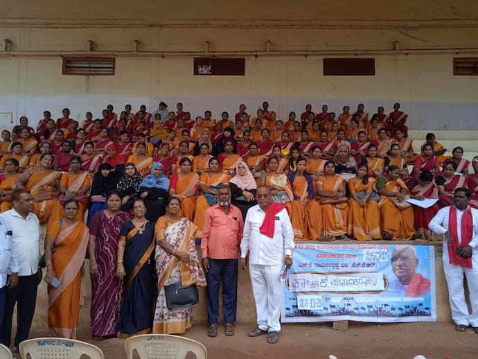 ಸಭೆಯ ಅಧ್ಯಕ್ಷತೆ ವಹಿಸಿ ಮಾತನಾಡಿದ ಸಂಘದ ರಾಜ್ಯಾಧ್ಯಕ್ಷ ಹೊನ್ನಪ್ಪ ಮರಿಯಮ್ಮನವರ್, ಸರ್ಕಾರದ ಪ್ರತಿಯೊಂದು ಯೋಜನೆಗಳನ್ನು ಜನರಿಗೆ ತಲುಪಿಸುವಂತಹ ಕೆಲಸವನ್ನು ಮಾಡುವ ಅಂಗನವಾಡಿ ಕಾರ್ಯಕರ್ತೆಯರಿಗೆ ಕೆಲಸಕ್ಕೆ ಸರಿಯಾದ ವೇತನವನ್ನು ನೀಡದೆ ಕೇಂದ್ರ ಮತ್ತು ರಾಜ್ಯ ಸರ್ಕಾರಗಳು ವಂಚಿಸುತ್ತಿದ್ದು, ಕನಿಷ್ಠ 25 ಸಾವಿರ ರು. ಗೌರವ ಧನವನ್ನು ನಿಗದಿ ಮಾಡಬೇಕು ಎಂದು ತಿಳಿಸುತ್ತಾ ಕಳಪೆ ಗುಣಮಟ್ಟದ ಸಮವಸ್ತ್ರ, ಕೆಲಸದ ಒತ್ತಡ ಸೇರಿದಂತೆ ಅಂನವಾಡಿ ಕಾರ್ಯಕರ್ತೆಯರನ್ನು ಜೀತದ ಆಳುಗಳಂತೆ ದುಡಿಸಿಕೊಳ್ಳುತ್ತಿರುವುದು ಸರಿಯಲ್ಲ ಎಂದರು.ಅಂಗನವಾಡಿ ಕಾರ್ಯಕರ್ತೆಯರ ಮತ್ತು ಸಹಾಯಕಿಯರನ್ನು ಶೋಷಿಸುತ್ತಿರುವ ಕೆಲ ಪಟ್ಟಭದ್ರ ಹಿತಾಸಕ್ತಿಗಳ ವಿರುದ್ಧ ಹೋರಾಟ ಮಾಡುವುದು ಅನಿವಾರ್ಯವಾಗಿದ್ದು, ಆ ನಿಟ್ಟಿನಲ್ಲಿ ಕೆಲ ಕಾರ್ಮಿಕ ಸಂಘಟನೆಗಳು ನಿಮ್ಮನ್ನು ದುರುಪಯೋಗ ಪಡಿಸಿಕೊಳ್ಳುತ್ತಿವೆ ಎಂದರು.