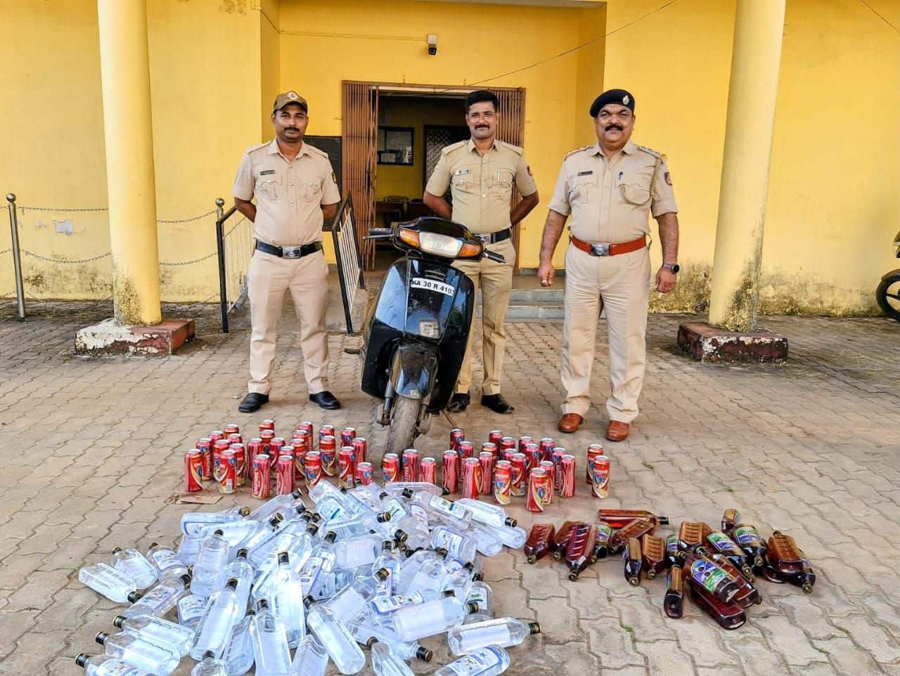 ವಾಹನದಲ್ಲಿದ್ದ ಚೀಲ ಪರಿಶೀಲಿಸಿದಾಗ ಗೋವಾದಲ್ಲಿ ಮಾರಾಟಕ್ಕೆ ಮಾತ್ರ ಸೀಮಿತವಾಗಿದ್ದ 18 ಲೀಟರ್ ಮದ್ಯ, 71.250 ಲೀಟರ್ ಗೋವಾ ಫೆನ್ನಿ ಹಾಗೂ 24 ಲೀಟರ್ ಬಿಯರ್ ಪತ್ತೆಯಾಗಿದೆ. ವಶಪಡಿಸಿಕೊಳ್ಳಲಾದ ಮದ್ಯದ ಅಂದಾಜು ಮೌಲ್ಯ ₹66,700 ಹಾಗೂ ವಾಹನದ ಮೌಲ್ಯ ₹48,000 ಸೇರಿದಂತೆ ಒಟ್ಟು ₹1,14,700 ಮೌಲ್ಯದ ಸ್ವತ್ತನ್ನು ಅಧಿಕಾರಿಗಳು ಜಪ್ತಿ ಮಾಡಿದ್ದಾರೆ.ಈ ಕುರಿತು ಅಬಕಾರಿ ನಿರೀಕ್ಷರು ಪ್ರಕರಣ ದಾಖಲಿಸಿಕೊಂಡಿದ್ದು, ತಲೆಮರೆಸಿಕೊಂಡಿರುವ ಆರೋಪಿಗಾಗಿ ಶೋಧ ಮುಂದುವರೆದಿದೆ.ಅಂತರ್ ಜಿಲ್ಲಾ ಕಳ್ಳನ ಬಂಧನ: