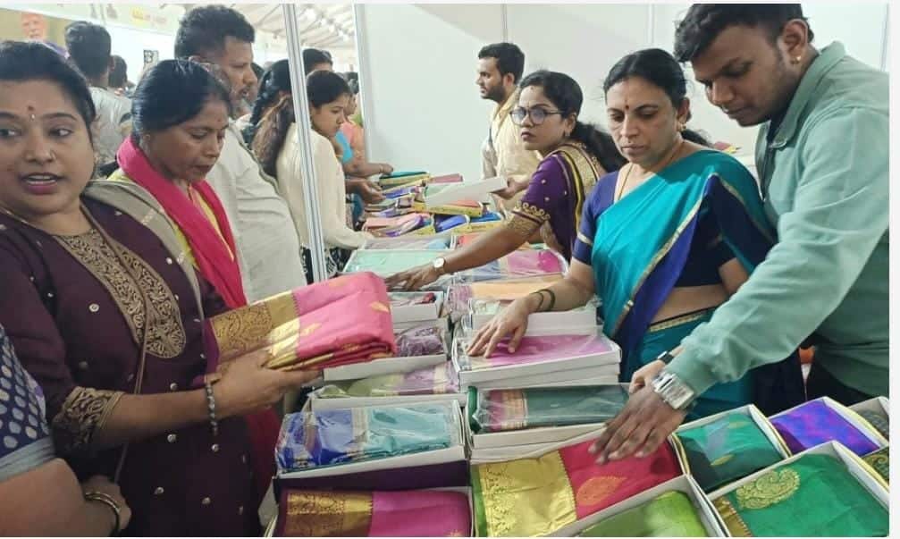 ದೊಡ್ಡಬಳ್ಳಾಪುರದ ಭಗತ್ಸಿಂಗ್ ಕ್ರೀಡಾಂಗಣದಲ್ಲಿ ನಡೆಯುತ್ತಿರುವ ಸ್ಯಾರಿ ಸಂತೆ