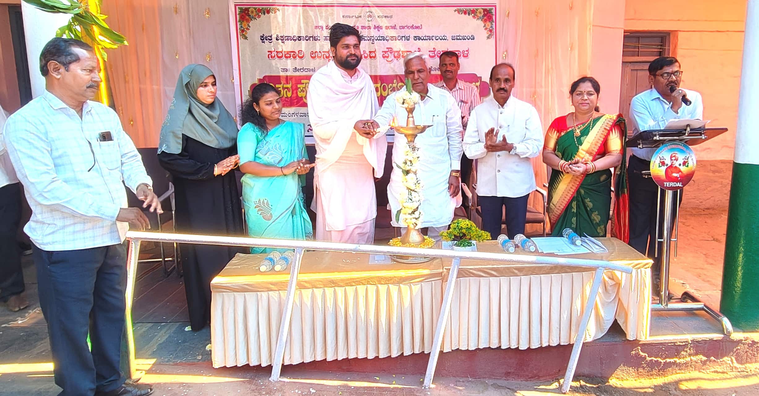 ಜಮಖಂಡಿ ಕ್ಷೇತ್ರ ಶಿಕ್ಷಣಾಧಿಕಾರಿ ಅಶೋಕ ಬಸಣ್ಣವರ ಪ್ರಾಸ್ತಾವಿಕ ಮಾತನಾಡಿ, ತೇರದಾಳ ಪಟ್ಟಣಕ್ಕೆ ಪ್ರೌಢಶಾಲೆಯ ಅಗತ್ಯತವಿತ್ತು. ಶಾಸಕರಾದ ಸವದಿ ಹಾಗೂ ಡಾ.ಉಮಾಶ್ರೀ ಅವರ ಸತತ ಪ್ರಯತ್ನದಿಂದ ರಾಜ್ಯದಲ್ಲಿ ಮಂಜೂರಾದ ೭೬ ಉನ್ನತೀಕರಿಸಿದ ಪ್ರೌಢಶಾಲೆಗಳಲ್ಲಿ ತೇರದಾಳದ ಪ್ರೌಢಶಾಲೆ ಸೇರಿದೆ. ಸದ್ಯ ೧೦ ಮಕ್ಕಳು ಪ್ರವೇಶ ಪಡೆದುಕೊಂಡಿದ್ದು, ಮುಂದಿನ ದಿನಗಳಲ್ಲಿ ಪ್ರವೇಶಾತಿ ಹೆಚ್ಚಳಗೊಳ್ಳುವ ನಿರೀಕ್ಷೆಯಿದೆ ಎಂದು ಹೇಳಿದರು..ಮಲ್ಲಪ್ಪ ಜಮಖಂಡಿ, ಅಪ್ಪು ಮಂಗಸೂಳಿ ಶಾಲೆಗೆ ದಾನವಾಗಿ ಕಂಪ್ಯೂಟರ್ ಮತ್ತು ಪ್ರಿಂಟರ್ ನೀಡಿದರು. ಹಿರೇಮಠದ ಗಂಗಾಧರ ದೇವರು ಸಾನಿಧ್ಯ ವಹಿಸಿದ್ದರು. ಪುರಸಭಾಧ್ಯಕ್ಷೆ ಶಿಲ್ಪಾ ರೋಡಕರ, ಉಪಾಧ್ಯಕ್ಷೆ ನಸ್ರೀನಬಾನು ನಗಾರ್ಜಿ, ಬಿಸಿಯೂಟ ಸಹನಿರ್ದೇಶಕ ಸಿ.ಎಸ್.ಕಲ್ಯಾಣಿ, ಮುಗು ಮೈತ್ರಾದೇವಿ ಜಿಟ್ಟಿ ವೇದಿಕೆಯಲ್ಲಿದ್ದರು.