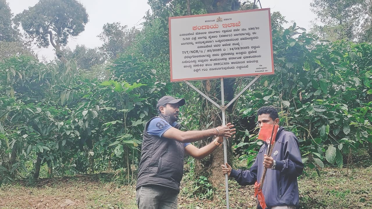 ---------------------------------------------------ಭೂಮಾಪಕರು ಮತ್ತು ಕಂದಾಯ ನಿರೀಕ್ಷಕರು ಮಾಡಿದ ತಪ್ಪಿನಿಂದ ತಲೆ ತಗ್ಗಿಸುವಂತಾಗಿದೆ. ತಪ್ಪಿತಸ್ಥ ಅಧಿಕಾರಿಗಳಿಗೆ ನೋಟಿಸ್ ಜಾರಿ ಮಾಡಲಾಗುವುದು. ಎಡಿಎಲ್ಆರ್ ಸಮ್ಮುಖದಲ್ಲಿ ಸರ್ವೇ ಮಾಡಿಸಿ ಒತ್ತುವರಿ ಜಾಗ ತೆರವುಗೊಳಿಸಲು ಕ್ರಮ ಕೈಗೊಳ್ಳಲಾಗುವುದು.-ಅನಂತಶಂಕರ್, ವಿರಾಜಪೇಟೆ ತಹಸೀಲ್ದಾರ್--------------------------------------------------------5.50 ಎಕರೆ ಸರ್ಕಾರಿ ಜಾಗ ಒತ್ತುವರಿ ಆಗಿರುವುದು ಸಂ.ನಂ.136/1 ರಲ್ಲಿಯೇ ಹೊರತು, ಸ.ನಂ. 136/1ಡಿ1 ರಲ್ಲಿ ಅಲ್ಲ. ಆದರೆ, ಖಾಸಗಿ ಜಾಗದಲ್ಲಿ ತಪ್ಪಾಗಿ ಫಲಕ ಅಳವಡಿಸಲಾಗಿತ್ತು.- ರಘುವೀರ್ ಭೂಮಾಪಕರು, ವಿರಾಜಪೇಟೆ