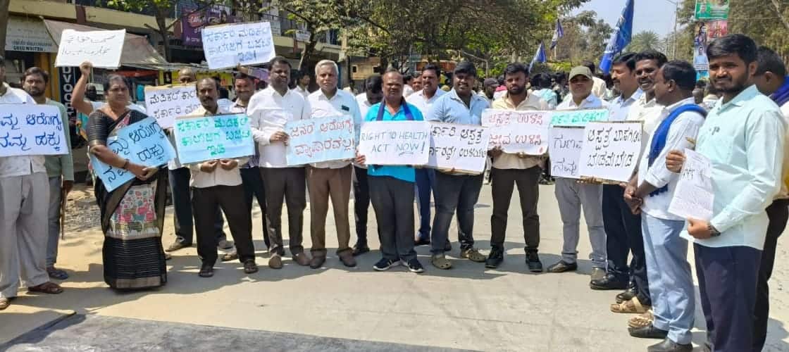 ಕರ್ನಾಟಕ ಸೇರಿದಂತೆ ದೇಶದ ಹಲವಾರು ರಾಜ್ಯಗಳಲ್ಲಿ ಆರೋಗ್ಯದ ಹಕ್ಕು ಇನ್ನೂ ಜಾರಿಯಾಗಿಲ್ಲ, ದೇಶದಲ್ಲಿ ಪ್ರತಿ ವರ್ಷ ಆರೋಗ್ಯ ಚಿಕಿತ್ಸೆಯ ಖರ್ಚುಗಳಿಂದಾಗಿ 10 ಕೋಟಿ ಜನರು ಬಡತನಕ್ಕೆ ತಳ್ಳಲ್ಪಡುತ್ತಿದ್ದಾರೆ. ಆರೋಗ್ಯ ಸೇವೆ ಹಾಗು ಚಿಕಿತ್ಸೆ ವೆಚ್ಚಗಳು ದಿನದಿಂದ ದಿನಕ್ಕೆ ದುಬಾರಿಯಾಗುತ್ತಿದ್ದು, ಖರ್ಚು ಭರಿಸಲಾಗದೆ ಎಷ್ಟೋ ಜನರು ಸಾವನ್ನಪ್ಪುತ್ತಿದ್ದಾರೆ. ಇಂತಹ ಪರಿಸ್ಥಿತಿಯಲ್ಲಿ, ನಮ್ಮ ಜಿಲ್ಲಾಸ್ಪತ್ರೆಗಳು ಮತ್ತು ಸಾರ್ವಜನಿಕ ಆರೋಗ್ಯ ವ್ಯವಸ್ಥೆಯನ್ನು ಬಲಪಡಿಸುವ ಬದಲು, ಸರ್ಕಾರ ಆರೋಗ್ಯ ಸೇವೆಯನ್ನು ಖಾಸಗೀಕರಣಗೊಳಿಸಲು ಚಿಂತನೆ ನಡೆಸಿದೆ. ಇದನ್ನು ಖಂಡಿಸಲು ಹಾಗೂ ನಮ್ಮ ಆರೋಗ್ಯ ಹಕ್ಕನ್ನು ಪಡೆಯಲು ನಾವು ರಾಜ್ಯಾದ್ಯಂತ ಇಂದು ಬೀದಿಗೆ ಇಳಿಯಬೇಕಾಗಿದೆ ಎಂದರು.ಜಾಗೃತಿ ಗೀತೆ, ಬೀದಿ ನಾಟಕ: