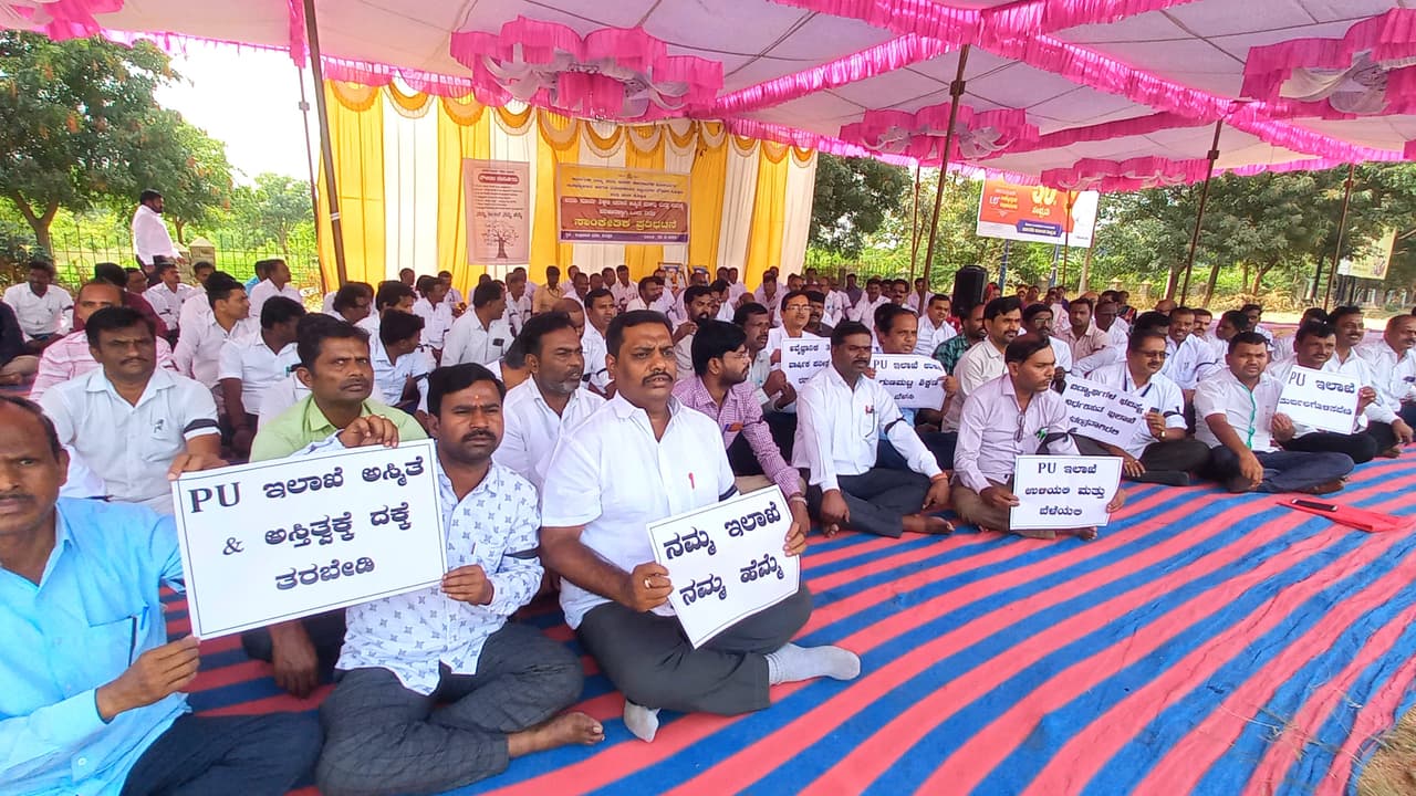 ಪಿಯು ಹಂತವನ್ನು ಪ್ರೌಢ ಶಾಲೆಯಲ್ಲಿ ವಿಲೀನಗೊಳಿಸುವುದನ್ನು ವಿರೋಧಿಸಿ ಪದವಿ ಪೂರ್ವ ಕಾಲೇಜುಗಳ ಪ್ರಾಚಾರ್ಯರ ಸಂಘ, ಪದವಿ ಪೂರ್ವ ಕಾಲೇಜುಗಳ ಉಪನ್ಯಾಸಕರ ಸಂಘ ಹಾಗೂ ಪದವಿ ಪೂರ್ವ ಕಾಲೇಜುಗಳ ಬೋಧಕೇತರ ಸಂಘ ಜಂಟಿಯಾಗಿ ಗುರುವಾರ ನಗರದ ಜಿಲ್ಲಾಧಿಕಾರಿ ಕಚೇರಿ ಎದುರು ಧರಣಿ ನಡೆಸಿದರು. ಪಿಯು ಶಿಕ್ಷಣಕ್ಕೆ ದೇಶದಲ್ಲಿಯೇ ಅತ್ಯುತ್ತಮ ಮಾನ್ಯತೆ ಇದೆ. ಗುಣಮಟ್ಟದ ಶಿಕ್ಷಣಕ್ಕೆ ಹೆಸರಾಗಿದೆ. ಇದನ್ನು ಏಕಾಏಕಿ ಪ್ರೌಢ ಶಿಕ್ಷಣ ವ್ಯಾಪ್ತಿಗೆ ಸೇರ್ಪಡೆ ಮಾಡುವುದು ಸರಿಯಲ್ಲ. ಇದರಿಂದ ಪಿಯು ಗುಣಮಟ್ಟದ ಶಿಕ್ಷಣಕ್ಕೆ ಸಮಸ್ಯೆಯಾಗುತ್ತದೆ. ಕೂಡಲೇ ಇದನ್ನು ಹಿಂಪಡೆಯಬೇಕು.