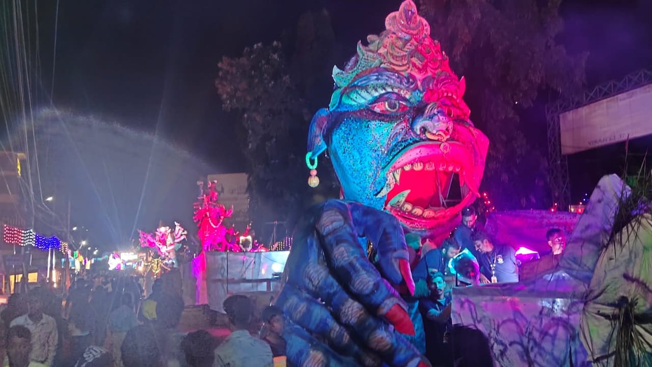 ದಶಮಂಟಪಗಳ ಶೋಭಾಯಾತ್ರೆ ನಡೆಯುವ ಮೂಲಕ ದಸರಾ ಉತ್ಸವ ಸಂಪನ್ನಗೊಂಡಿತು. ಈ ಕ್ಷಣವನ್ನು ಸಾವಿರಾರು ಜನರು ಕಣ್ತುಂಬಿಕೊಂಡರು.