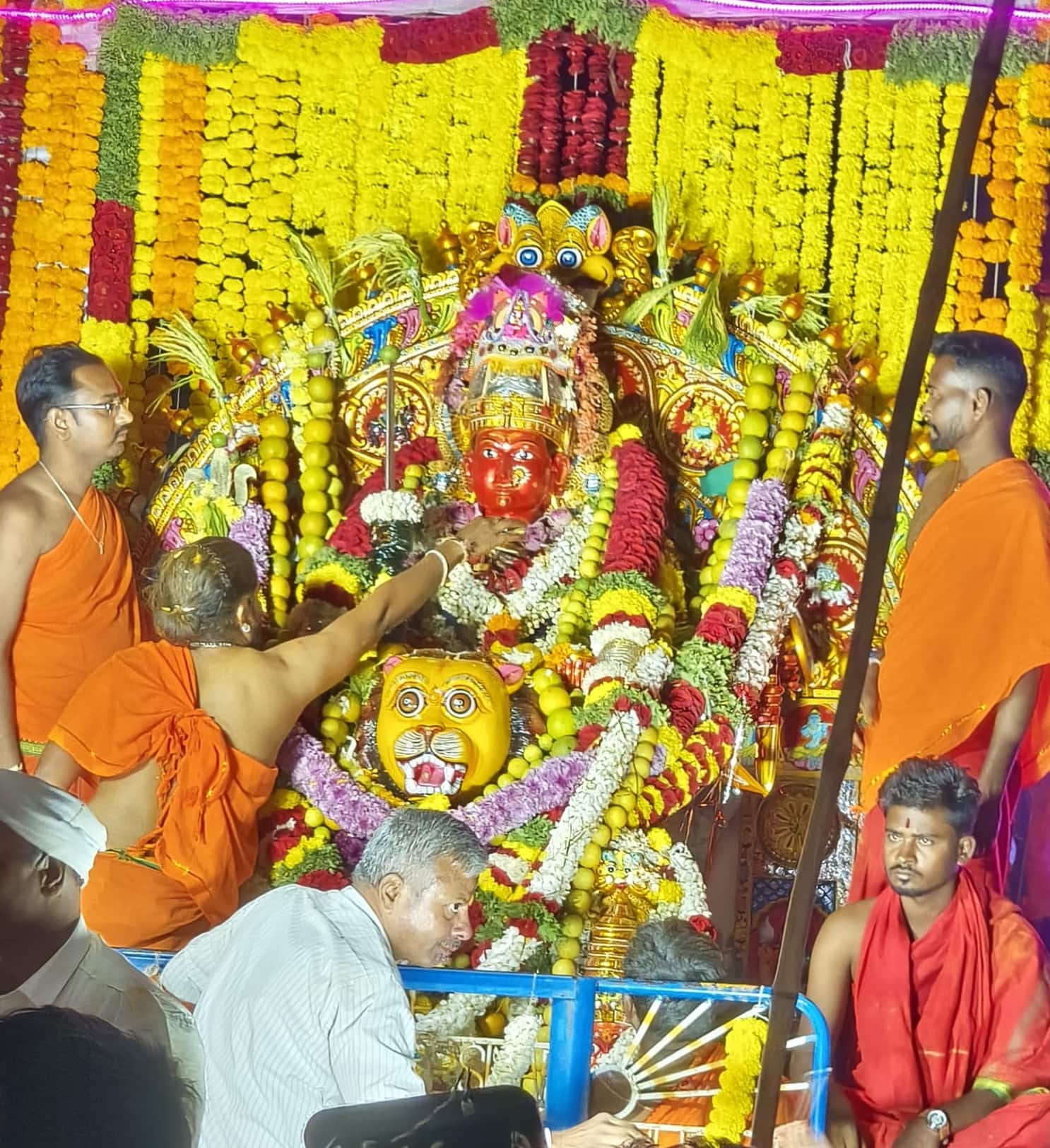 ಬಣ್ಣಗೊಂಡ ನೂತನ ಗ್ರಾಮ ದೇವಿಯ ಮೂರ್ತಿಯು ಅನಾವರಣಗೊಳ್ಳುತ್ತಿದ್ದಂತೆಯೇ ನೆರೆದಿದ್ದ ಸಾವಿರಾರು ಭಕ್ತರು ಉಧೋ ಉಧೋ ಎನ್ನುವ ಉದ್ಘೋಷ ಮಾಡಿದರು.
