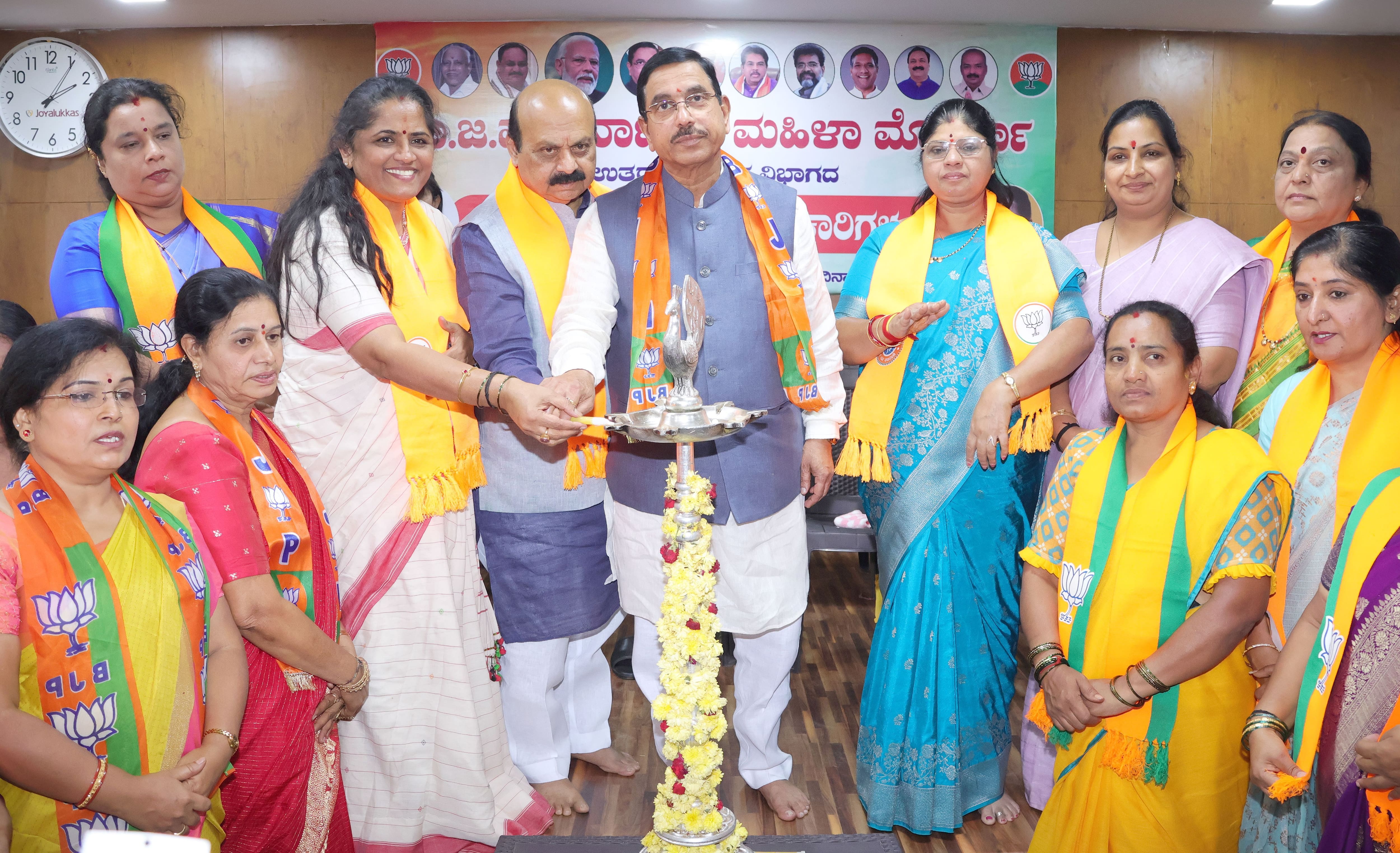 ನಮ್ಮತನವನ್ನು ರಕ್ಷಣೆ ಮಾಡುವ ಕಾಲ ಈಗ ಬಂದಿದೆ. ಬಿಜೆಪಿ ಮಹಿಳಾ ಮೋರ್ಚಾ ಕಾರ್ಯಕರ್ತೆಯರು ರಾಜ್ಯ ಸರ್ಕಾರದ ಮಹಿಳಾ ವಿರೋಧಿ ನೀತಿಗಳ ಕುರಿತು ಜನತೆಗೆ ತಿಳಿಸುವ ಕಾರ್ಯ ಮಾಡಬೇಕಿದೆ. ಪ್ರತಿಯೊಬ್ಬ ಮಹಿಳೆಯು ಕಿತ್ತೂರು ರಾಣಿ ಚೆನ್ನಮ್ಮ, ದುರ್ಗಾಮಾತೆಯಂತೆ ಹೋರಾಡಿ ರಾಜ್ಯವನ್ನು ರಕ್ಷಣೆ ಮಾಡುವಂತೆ ಕರೆ ನೀಡಿದರು.ಕಾರ್ಯಕ್ರಮ ಉದ್ಘಾಟಿಸಿದ ಕೇಂದ್ರ ಸಚಿವ ಪ್ರಹ್ಲಾದ ಜೋಶಿ ಮಾತನಾಡಿ, ಮಹಿಳೆಯರು ಹೋರಾಟದ ಸ್ವಾಭಿಮಾನ ಬೆಳೆಸಿಕೊಳ್ಳಿ. ಜನರ ಮಧ್ಯವಿದ್ದು, ಅವರ ಸಮಸ್ಯೆಗೆ ಸ್ಪಂದಿಸಿ ನ್ಯಾಯ ದೊರಕಿಸಿಕೊಡುವವರು, ಪಕ್ಷದ ಸಂಘಟನೆಯಲ್ಲಿ ತೊಡಗಿಕೊಳ್ಳುವವರು ನಾಯಕನಾಗುತ್ತಾರೆ. ಜನಪ್ರತಿನಿಧಿಗಳ ಚುನಾವಣೆಯಲ್ಲಿ ಮಹಿಳೆಯರಿಗೆ ಶೇ. 33ರಷ್ಟು ಮೀಸಲಾತಿ ನೀಡಬೇಕು ಎಂಬ ಕನಸನ್ನು ಪ್ರಧಾನಿ ನರೇಂದ್ರ ಮೋದಿ ಸಾಕಾರಗೊಳಿಸಿದ್ದಾರೆ. ಮುಂಬರುವ ಚುನಾವಣೆಯಲ್ಲಿ ಮಹಿಳೆಯರಿಗೂ ಹೆಚ್ಚಿನ ಅವಕಾಶಗಳಿದ್ದು, ಮಹಿಳಾ ಮೋರ್ಚಾ ಕಾರ್ಯಕರ್ತೆಯರು ಕ್ರಿಯಾಶೀಲ, ಪ್ರಾಮಾಣಿಕರಾಗಿ ಪಕ್ಷ ನೀಡಿದ ಕಾರ್ಯಗಳನ್ನು ಶ್ರಮವಹಿಸಿ ಪೂರ್ಣಗೊಳಿಸಿದ್ದೇ ಆದಲ್ಲಿ ಮುಂದಿನ ದಿನಗಳಲ್ಲಿ ನಿಮಗೂ ಸ್ಥಾನಮಾನಗಳು ದೊರೆಯಲಿವೆ. ಮಹಿಳಾ ಕಾರ್ಯಕರ್ತೆಯರು ಇಂದಿನಿಂದಲೇ ಪಕ್ಷ ಸಂಘಟನೆಯಲ್ಲಿ ಮುಂದಾಗುವಂತೆ ಕರೆ ನೀಡಿದರು.