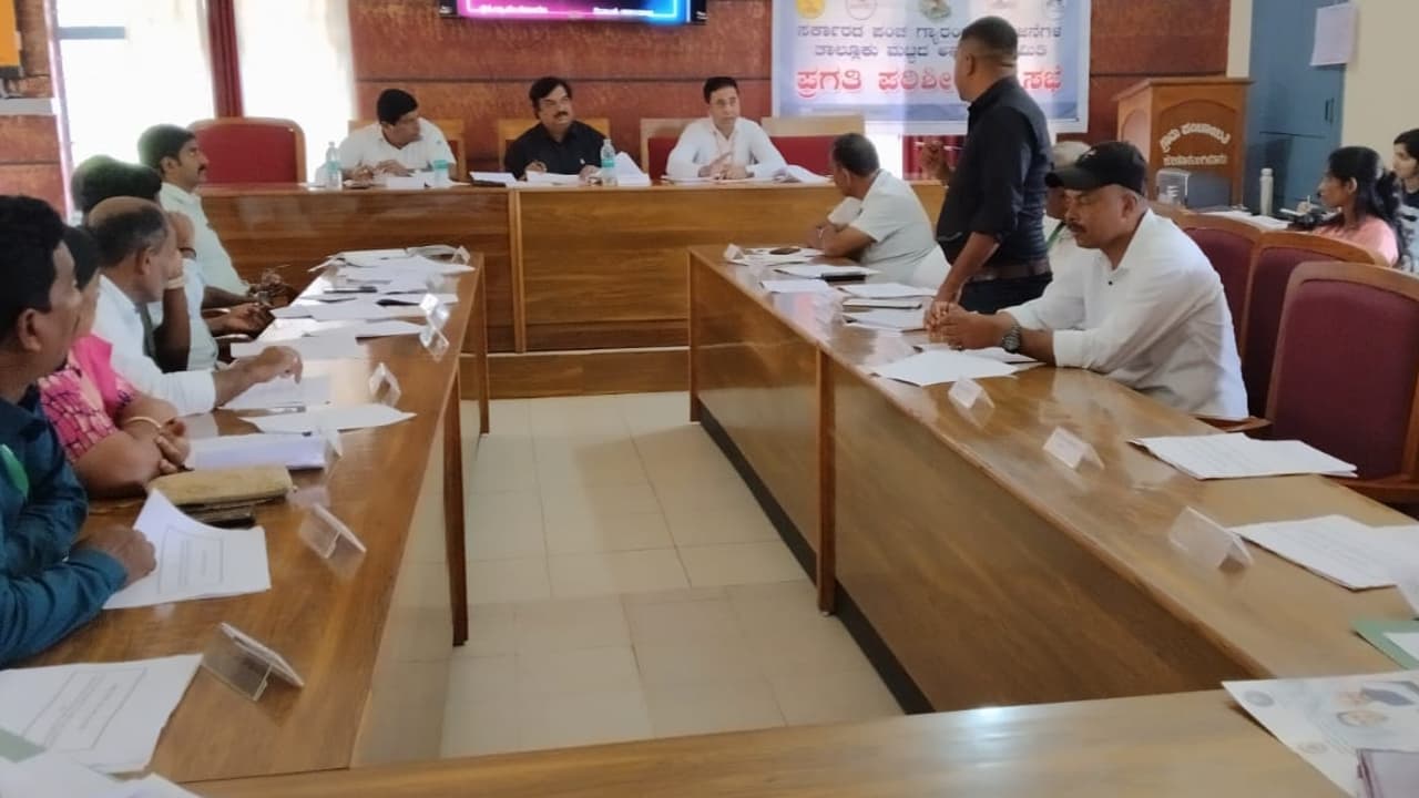 ಕುಶಾಲನಗರ ತಾಲೂಕು ಗ್ಯಾರಂಟಿ ಅನುಷ್ಠಾನ ಸಮಿತಿಯ ಪ್ರಗತಿ ಪರಿಶೀಲನಾ ಸಭೆ ಕೂಡ ಮಂಗಳೂರು ಗ್ರಾಮ ಪಂಚಾಯಿತಿ ಸಭಾಂಗಣದಲ್ಲಿ ನಡೆಯಿತು. ತಾಲೂಕು ಗ್ಯಾರಂಟಿ ಅನುಷ್ಠಾನ ಸಮಿತಿಯ ಅಧ್ಯಕ್ಷ ವಿ.ಪಿ. ಶಶಿಧರ್ ಅಧ್ಯಕ್ಷತೆ ವಹಿಸಿದ್ದರು.