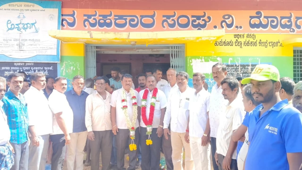 ಚುನಾವಣಾ ಅಧಿಕಾರಿಯಾಗಿ ಮಾಲತೇಶ್, ಸಿಇಒ ಓಂಕಾರ ಮೂರ್ತಿ ಕೆಲಸ ನಿರ್ವಹಿಸಿದರು. ಅಭಿಮಾನಿಗಳು ಪಟಾಕಿ ಸಿಡಿಸಿ ಸಿಹಿ ಹಂಚಿ ಶುಭ ಕೋರಿದರು. ಇದೇ ಸಂದರ್ಭದಲ್ಲಿ ಉಪಾಧ್ಯಕ್ಷ ಕಂಚಿರಾಯಿ, ಪರಶಿವಮೂರ್ತಿ, ಮಂಜುನಾಥ್ ಡಿ. ಎಂ., ಸತೀಶ್, ಮಂಜುನಾಥ್ ಎಸ್.ಎಂ., ಬಸವರಾಜು ಎಚ್., ಯೋಗೀಶ್ ಎಚ್.ಪಿ., ಭವ್ಯಾ ಎನ್.ಎನ್., ಮೋನಿಕಾ ಡಿ., ಶ್ರೀಪತಿ, ಸಿದ್ದಗಂಗಯ್ಯ ಪಿ.ಜೆ., ಡಿಸಿಸಿ ಬ್ಯಾಂಕ್ ಹಾರನಹಳ್ಳಿ ಪ್ರಭಾಕರ್ ಸೇರಿದಂತೆ ಅವರ ಅಭಿಮಾನಿಗಳು ಹಲವು ಮುಖಂಡರು ಹಾಜರಿದ್ದರು.ಫೊಟೊತಾಲೂಕಿನ ದೊಡ್ಡಗುಣಿ ಗ್ರಾಮದ ಪ್ರಾಥಮಿಕ ಕೃಷಿ ಪತ್ತಿನ ಸಹಕಾರ ಸಂಘಕ್ಕೆ ನೂತನ ಅಧ್ಯಕ್ಷರಾಗಿ ಡಿ.ಎಸ್. ರೇಣುಕ ಪ್ರಸಾದ್, ಉಪಾಧ್ಯಕ್ಷರಾಗಿ ಕಂಚಿ ರಾಯಿ ಟಿ.ಟಿ. ಅವಿರೋಧವಾಗಿ ಆಯ್ಕೆಯಾದರು.