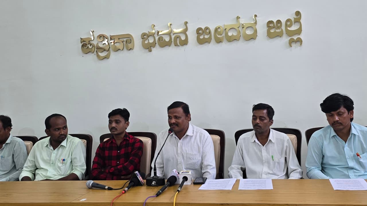 ಪೋಟೋ: 3ಬಿಡಿಆರ್61ಸುದ್ದಿಗೋಷ್ಠಿಯಲ್ಲಿ ಸರ್ಕಾರಿ ಪ್ರಥಮ ದರ್ಜೆ ಕಾಲೇಜುಗಳ ಅತಿಥಿ ಉಪನ್ಯಾಸಕರ ಸಂಘದ ಜಿಲ್ಲಾಧ್ಯಕ್ಷ ಚಂದ್ರಕಾಂತ ನಾರಾಯಣಪುರ ಮಾತನಾಡಿದರು.