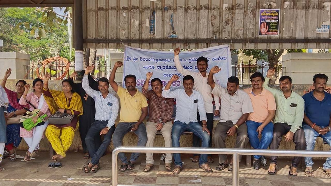 ತರಗತಿ ಬಹಿಷ್ಕರಿಸಿ ಸರ್ಕಾರಿ ಕಾಲೇಜಿನ ಅತಿಥಿ ಉಪನ್ಯಾಸಕರಿಂದ ಪ್ರತಿಭಟನೆ